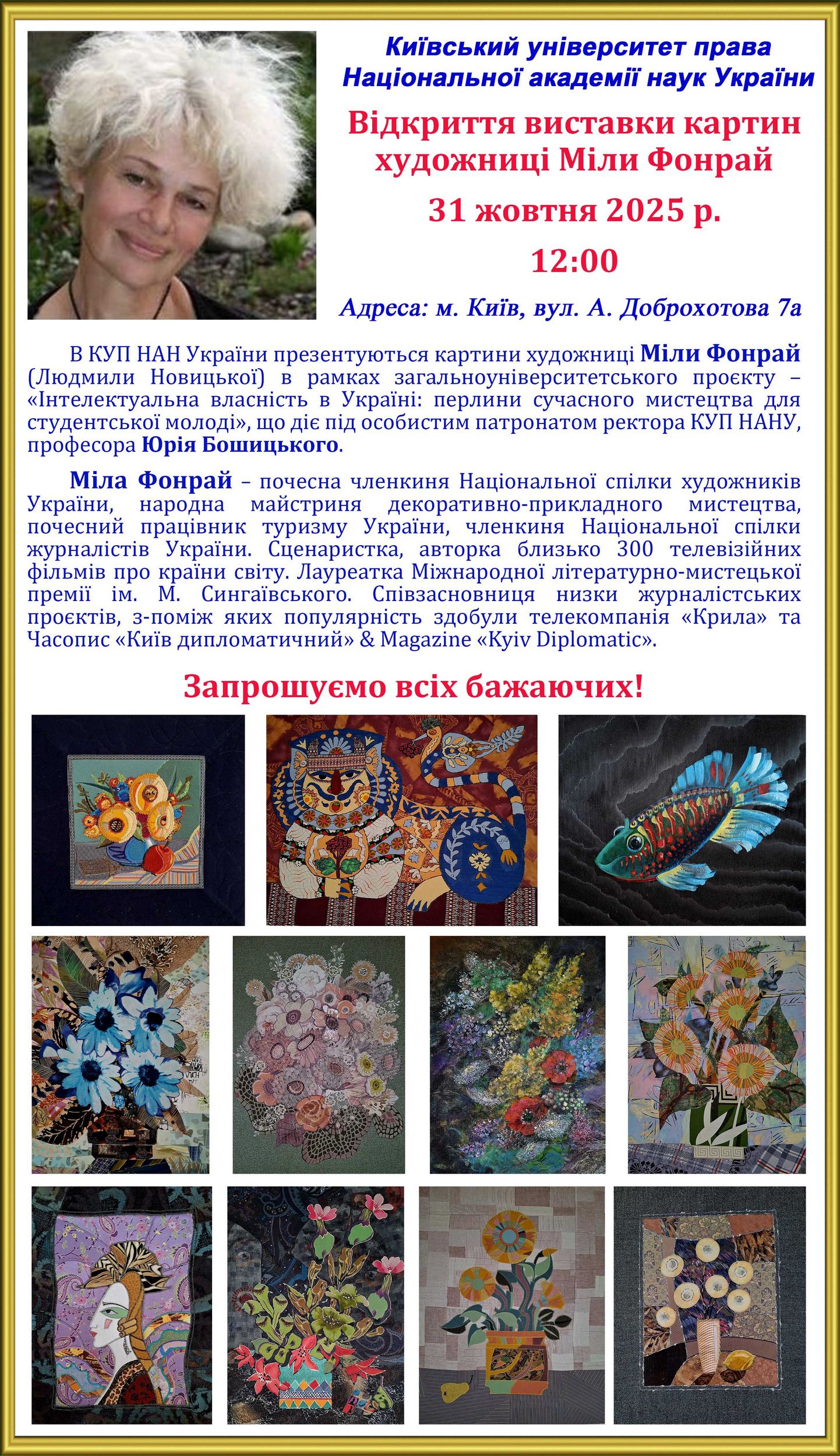 Увага! Відбудеться відкриття виставки картин художниці Міли Фонрай