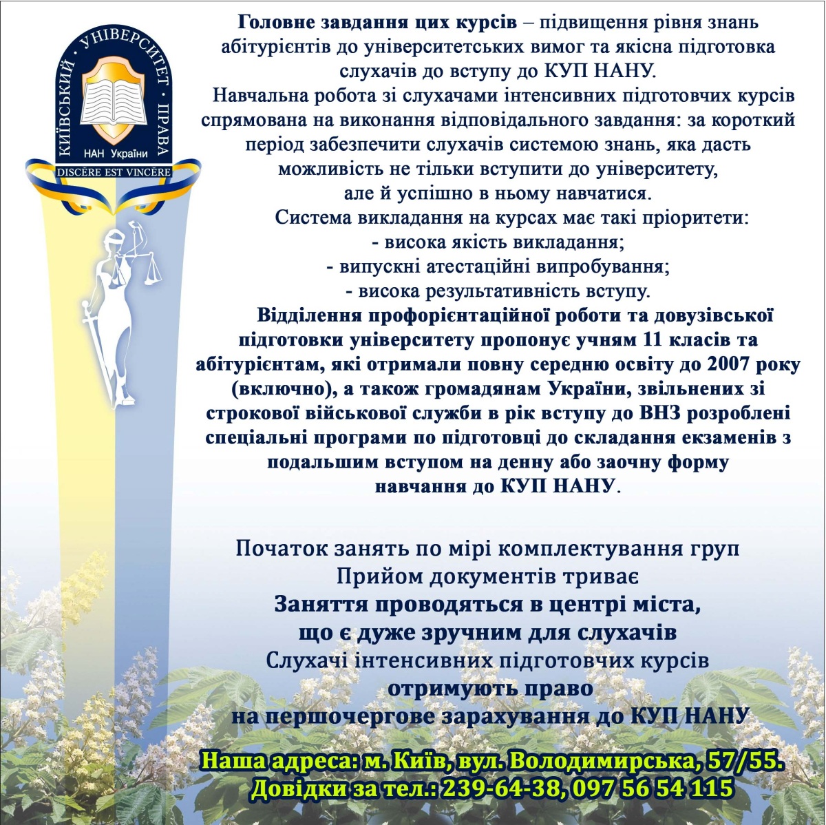 Увага! Відділення профорієнтаційної роботи та довузівської підготовки КУП НАНУ оголошує набір слухачів на інтенсивні підготовчі курси!