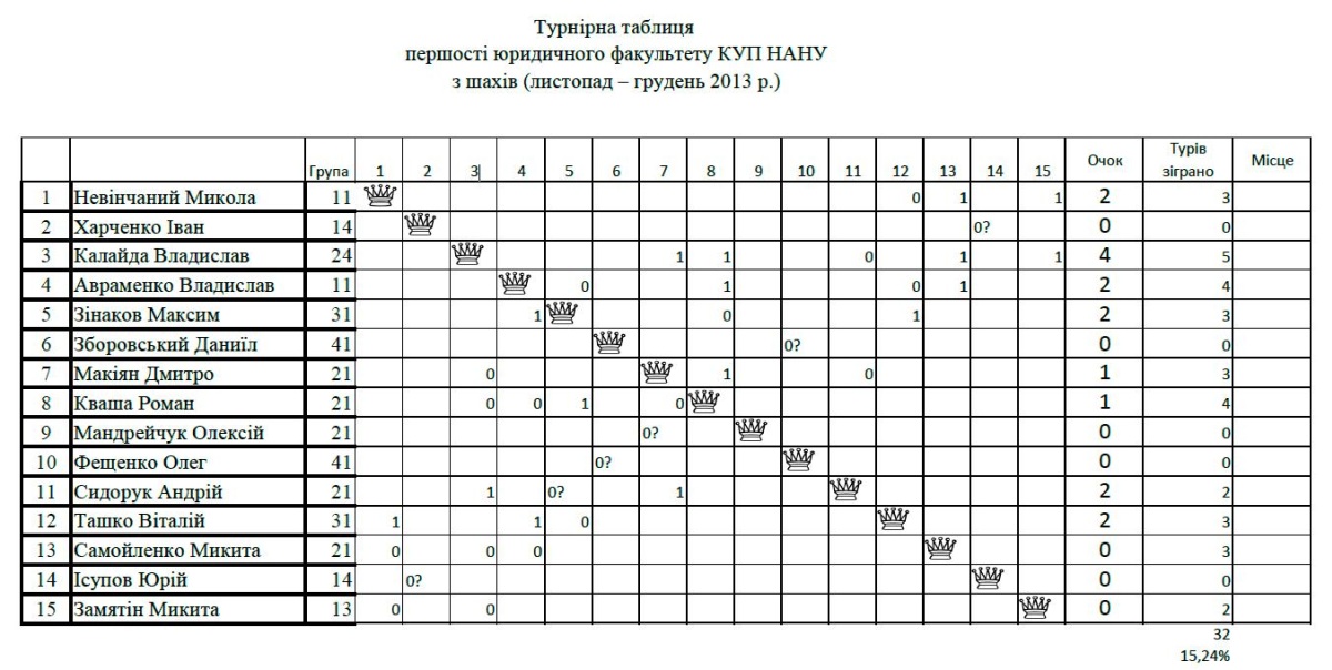 Увага! з 19 листопада 2013р. розпочинається першість юридичного факультету Київського університету права НАН України з шахів