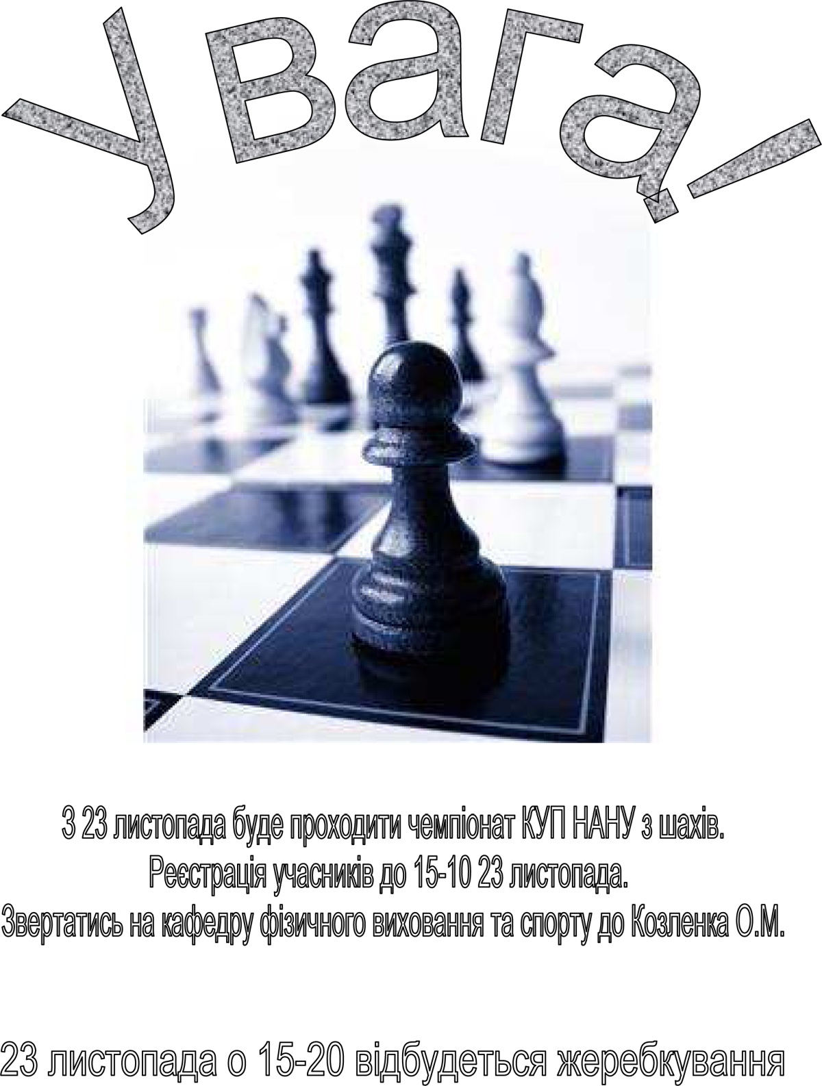 Увага!З 23 листопада буде проходити чемпіонат КУП НАНУ з шахів.