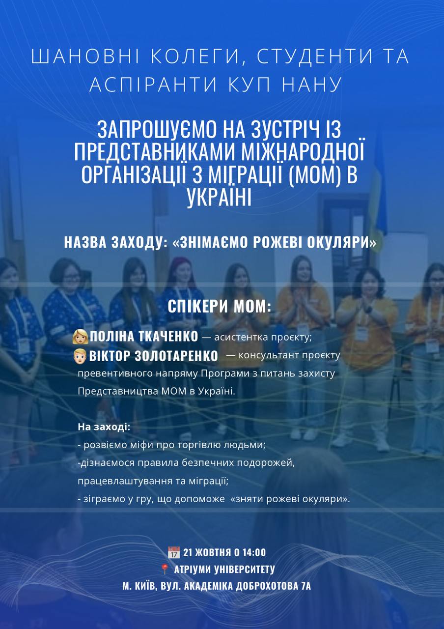 Увага! Запрошуємо на зустіч із представниками міжнародної організації з міграції (МОМ) в Україні.