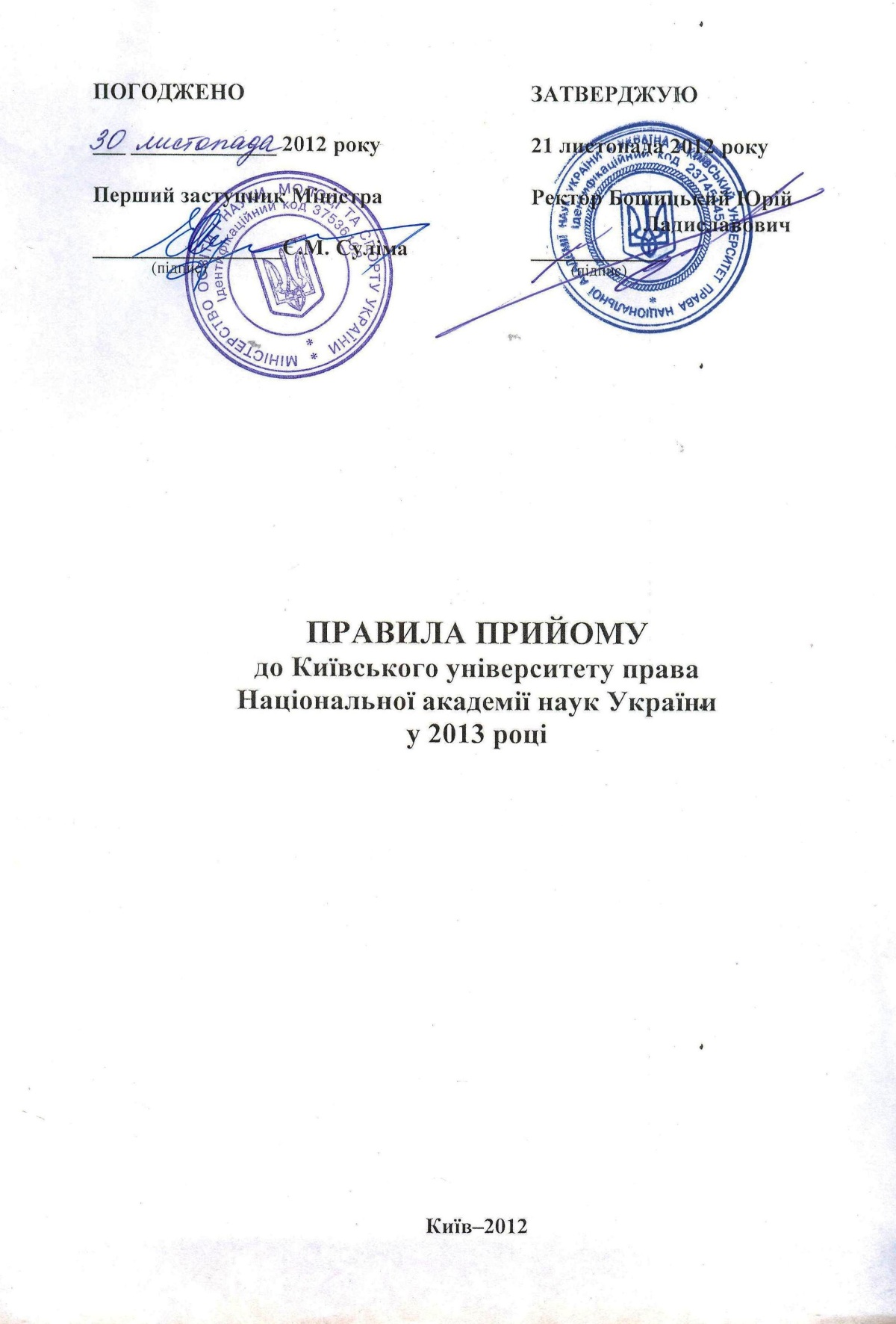 Увага!Затверджено правила прийому до КУП НАНУ у 2013 році та погоджено у МОНмолодьспорту України