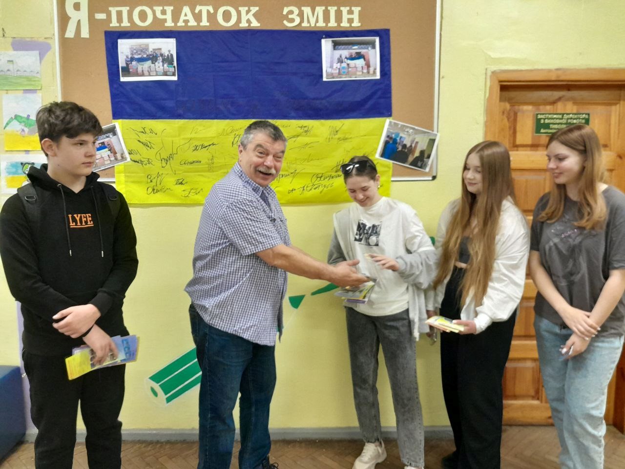 Школярам роздані буклети з інформацією про Київський університет права НАН України, його структурні підрозділи, календарики та інший рекламно-інформаційний матеріал.