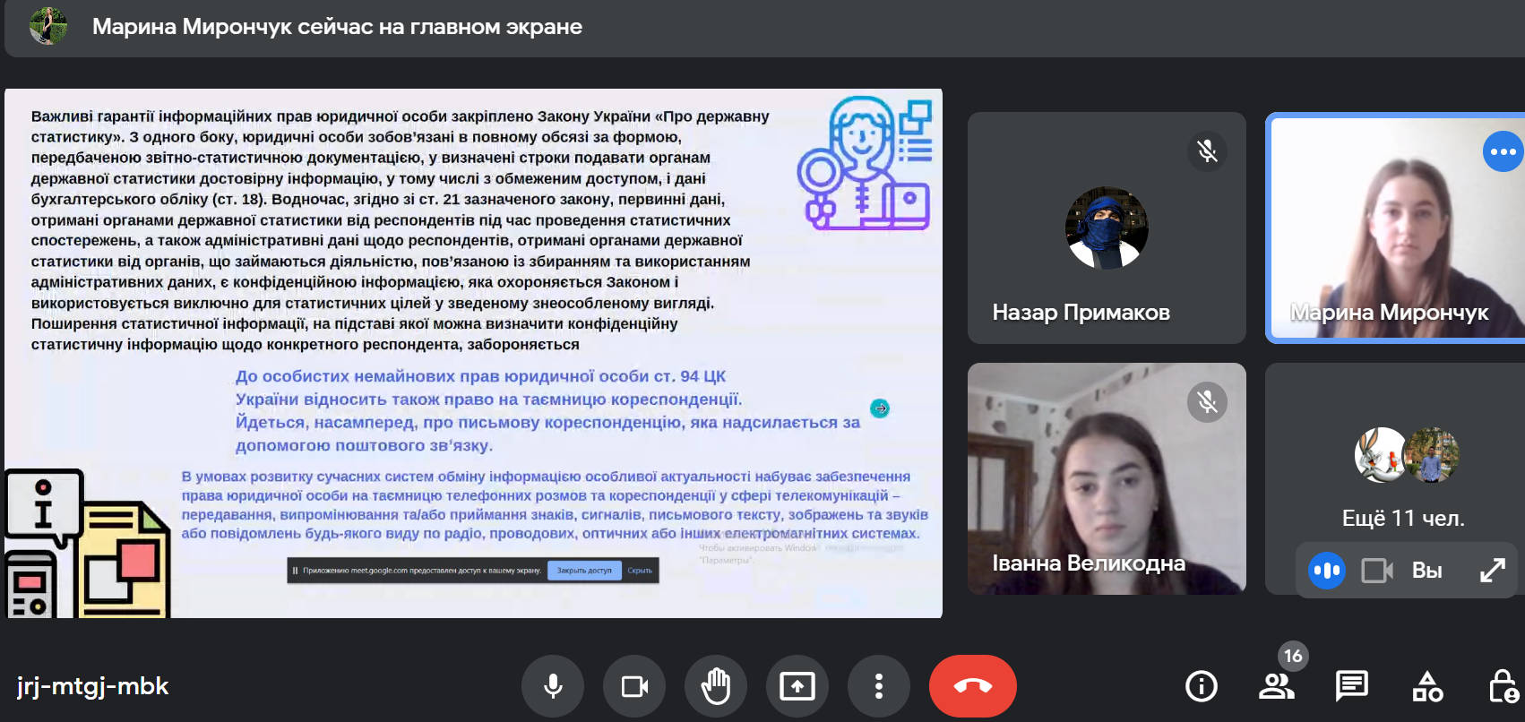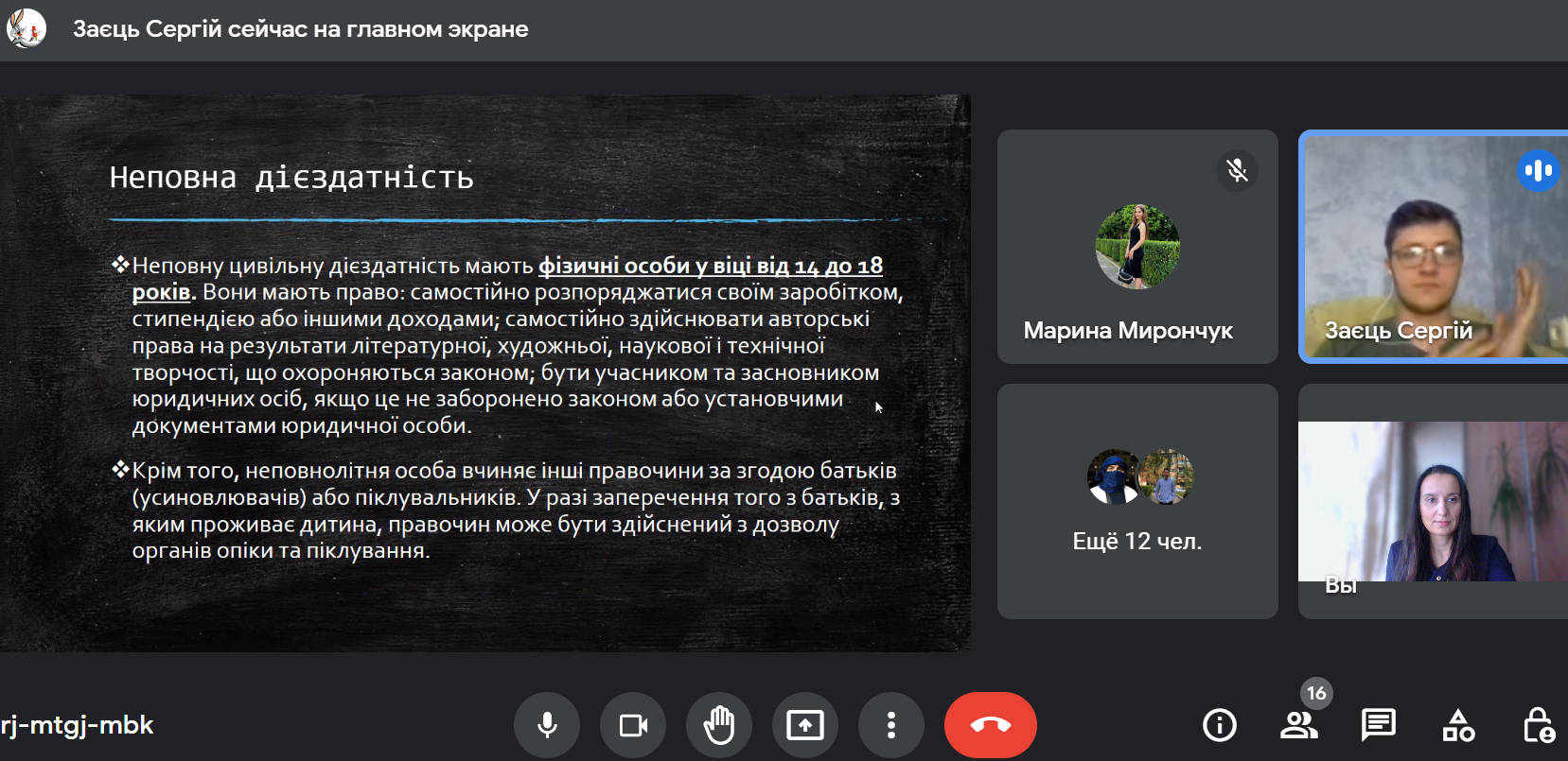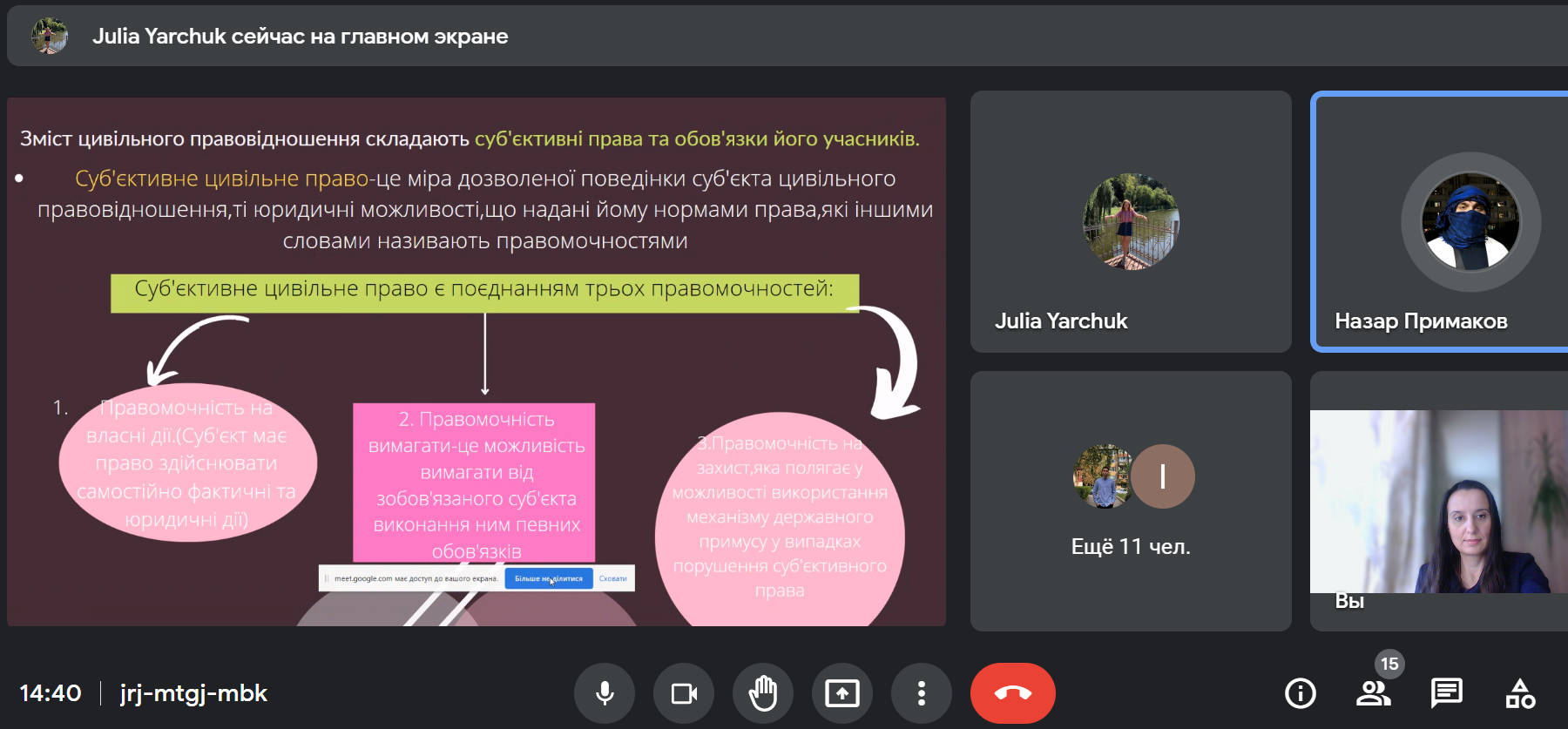 У науковому гуртку взяли участь здобувачі вищої освіти спеціальності 081 «Право». Під час засідання студенти активно дискутували, обмінювалися думками, висловлювали власні погляди на питання, що розглядалися.