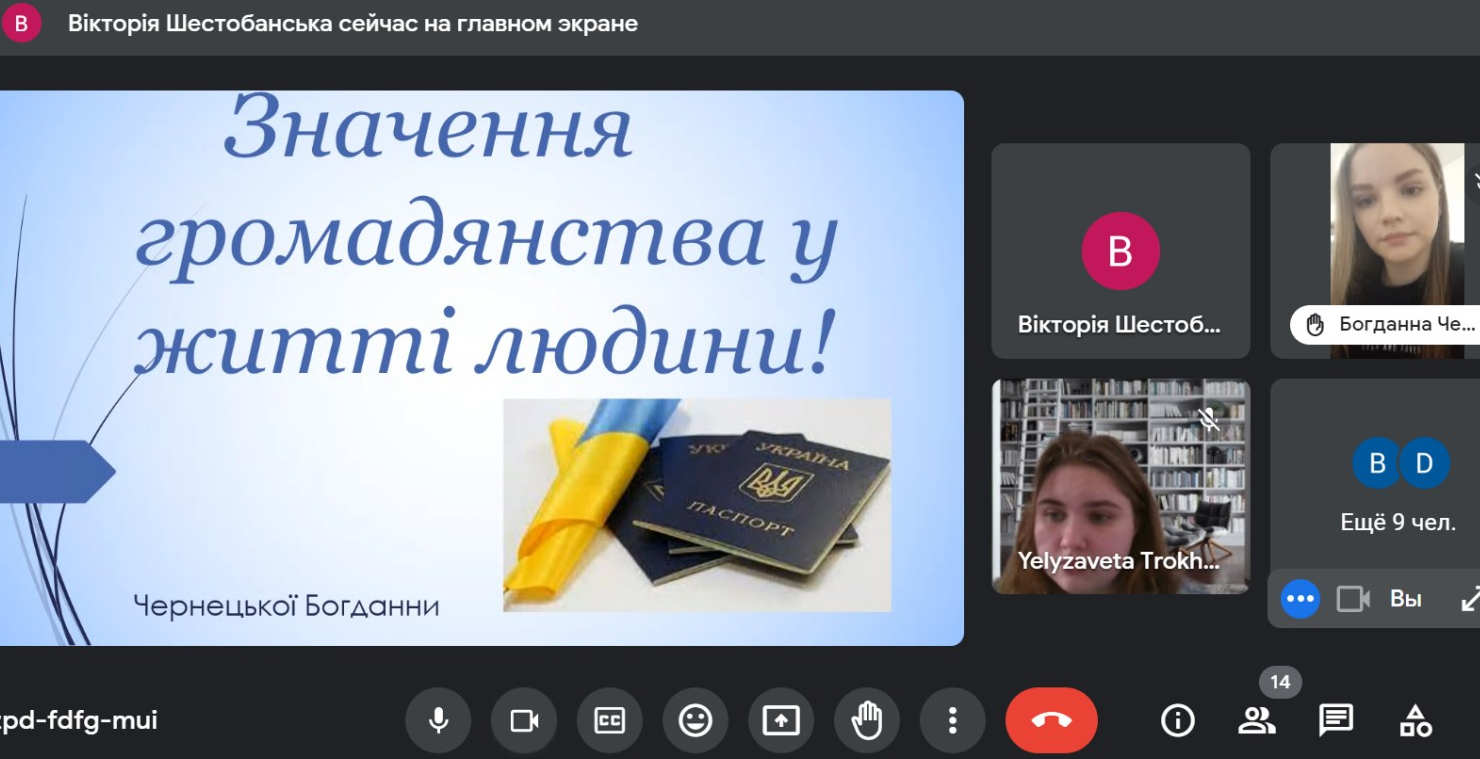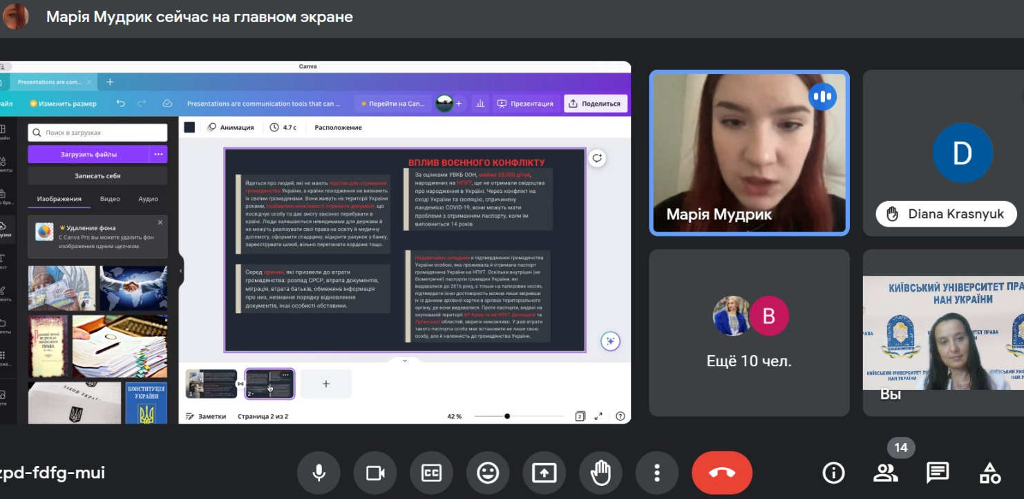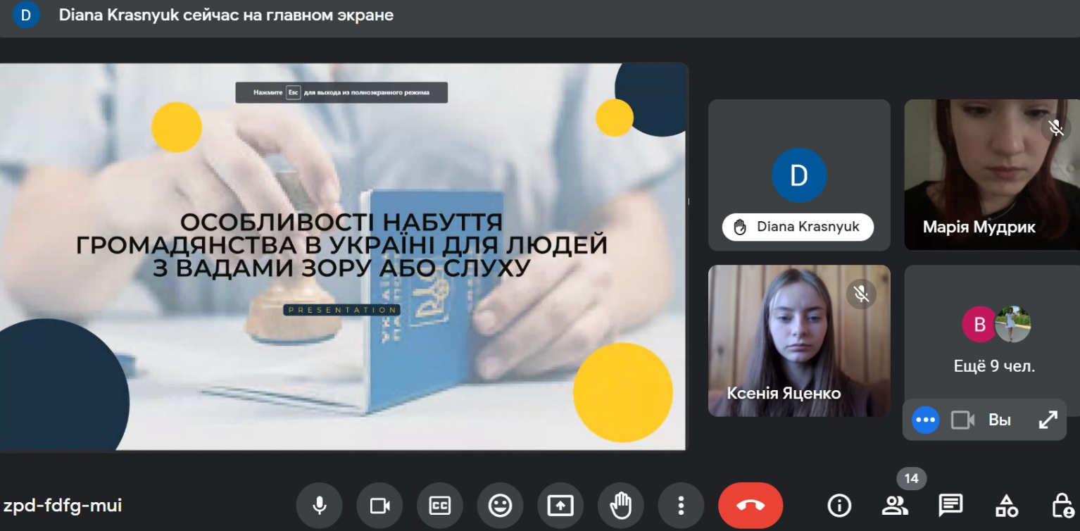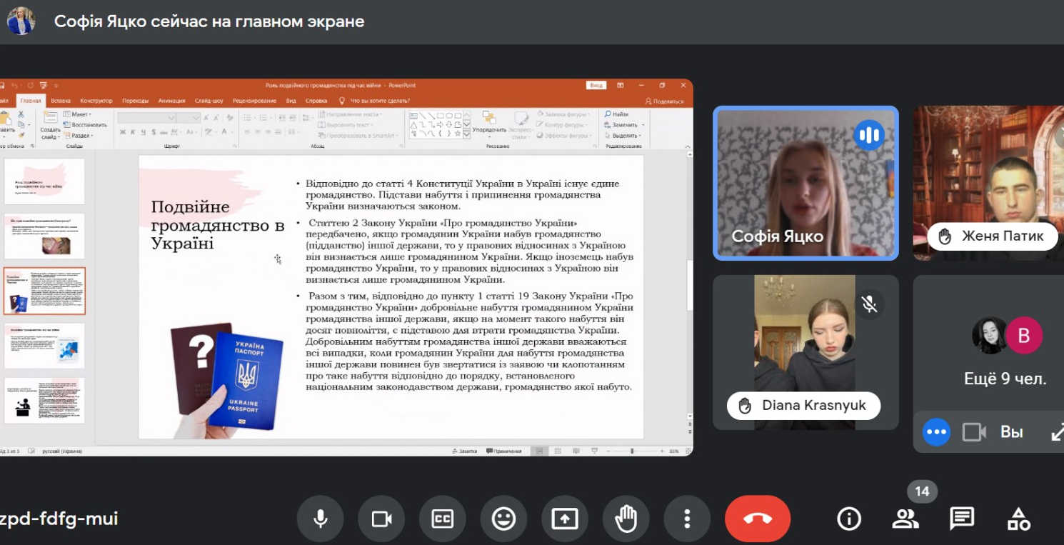 3 березня 2023 р. доцентом кафедри міжнародного права та галузевих правових дисциплін Толкачовою І.А. проведено засідання студентського наукового гуртка з конституційного права України, яке було присвячене ролі та значенню інституту громадянства для забезпечення прав людини.