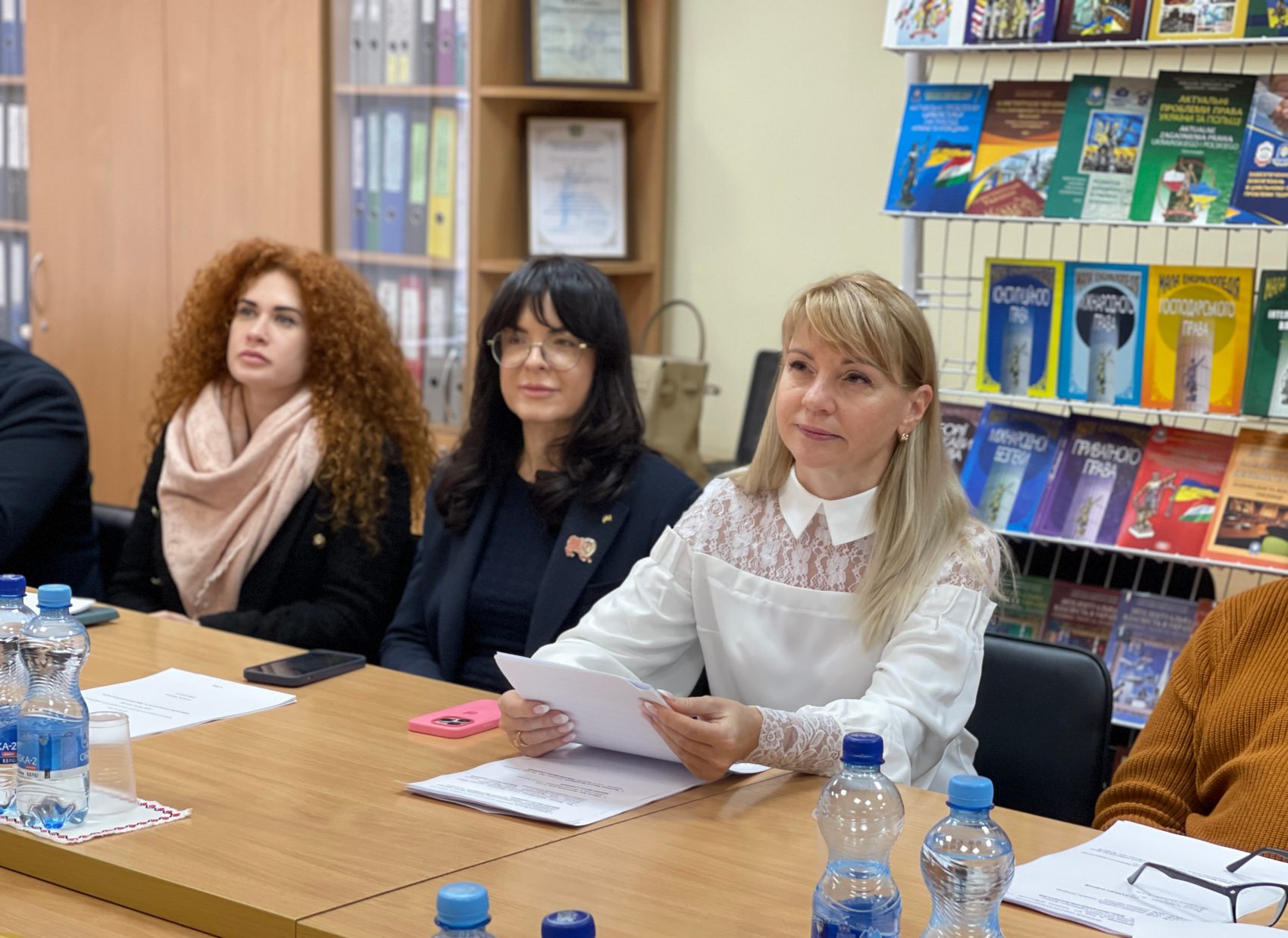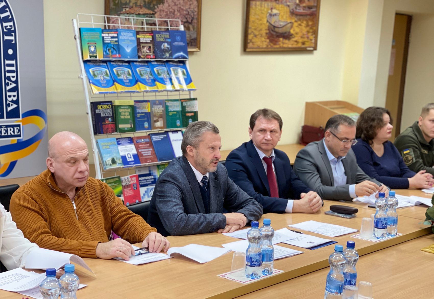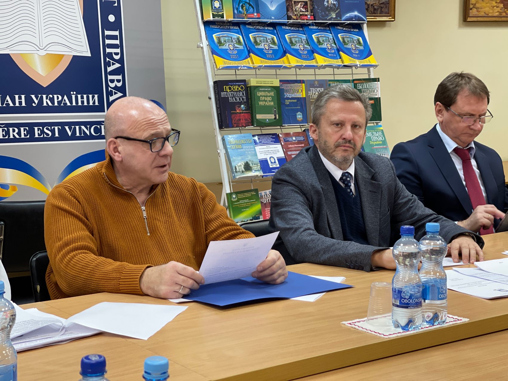 Проректор з наукової роботи Іван КАЙЛО розповів про проблеми правового регулювання відшкодування втраченого майна громадян України на окупованих територіях, а також наголосив на необхідності фіксації воєнних злочинів. Ця тема викликала жваве обговорення присутніх науковців-правників.