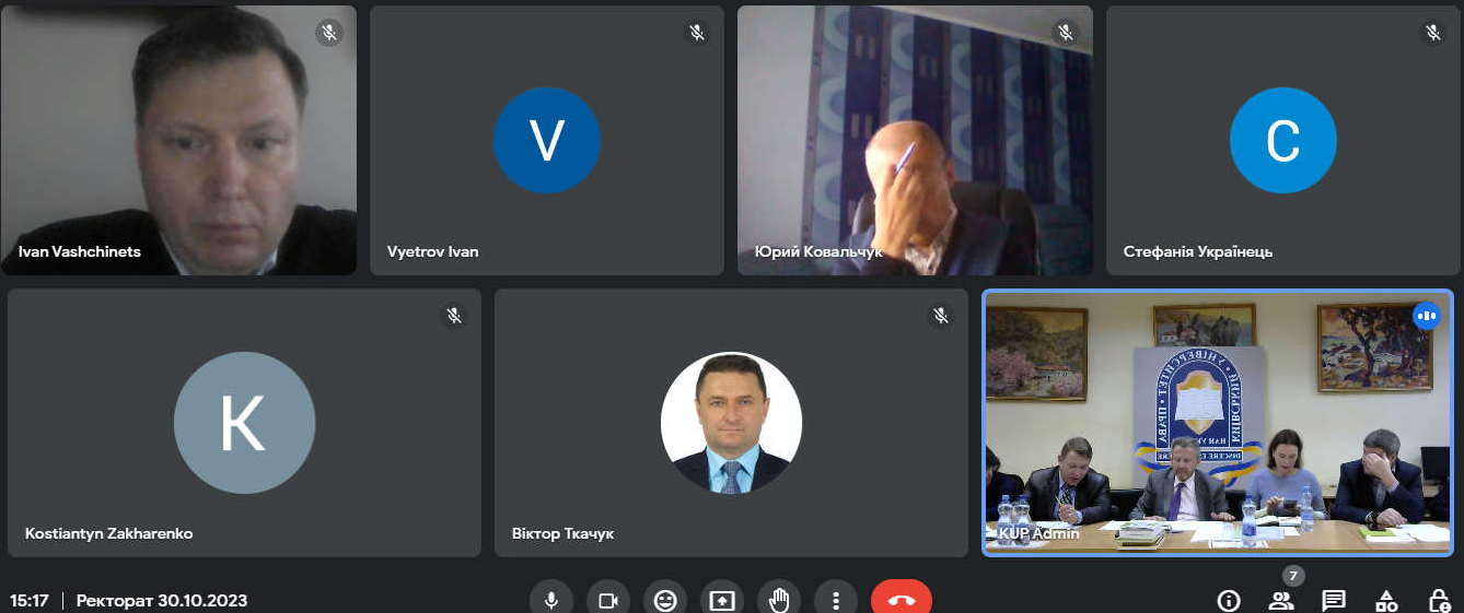 У понеділок 30 жовтня 2023 року відбулося чергове засідання ректорату Київського університету права НАН України. До порядку денного засідання ввійшли найбільш важливі та актуальні питання, що стосуються як поточної, так і перспективної діяльності КУП НАН України.