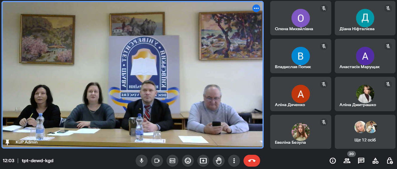 З діяльністю кафедр університету слухачі були ознайомлені завідувачем кафедри кримінального права та процесу Валерієм Андрусівим та завідувачкою кафедри міжнародного права та галузевих правових дисциплін Анастасією Антонюк. Виступи науково-педагогічних працівників університету супроводжувалися демонстрацією відеоматеріалів про КУП НАН України.
