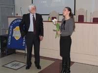 Ректор вручив Миколі Волзі сертифікат учасника персональної виставки-презентації «Квіти та камені».