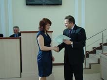 Наказ по університету про присвоєння студентам кваліфікації юриста за спеціальністю «Правознавство» та відрахування їх зі складу студентів ІV курсу відділення перепідготовки оголосила завідувач відділення перепідготовки Н.І.Авраменко.