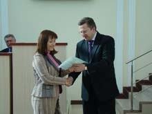 Дипломи спеціаліста вручав випускникам ректор Ю. Л. Бошицький, з добрими побажаннями, з надією й вірою у їх плідну співпрацю з університетом.