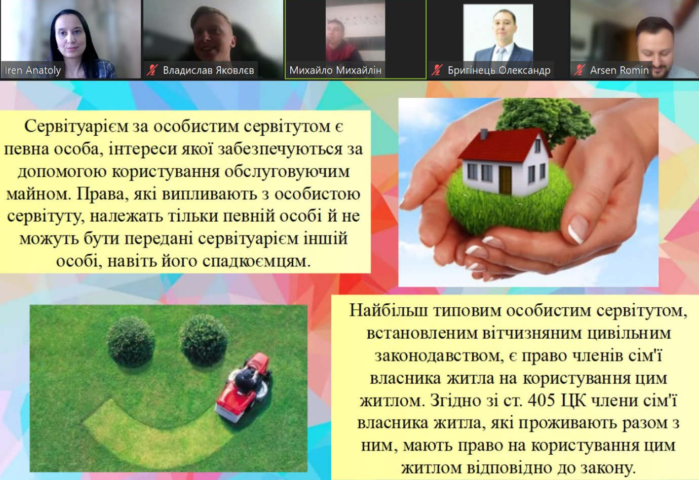 В роботі наукових гуртків взяли участь здобувачі першого (бакалаврського) та другого (магістерського) рівня вищої освіти спеціальності 081 «Право», які підготували змістовні доповіді з презентаціями. З цивільного права підготовлені доповіді на теми: «Проблеми захисту права власності в умовах воєнного стану», «Довіреність та представництво», «Особливості договору про встановлення земельного сервітуту» та інші. З фінансового права підготовлено презентації на теми: «Міжнародні валютні ринки», «Правове забезпечення валютної безпеки держави як структурного елемента фінансової безпеки держави», «Регулювання обігу криптовалюти в ЄС», «Валютні резерви» та інші.