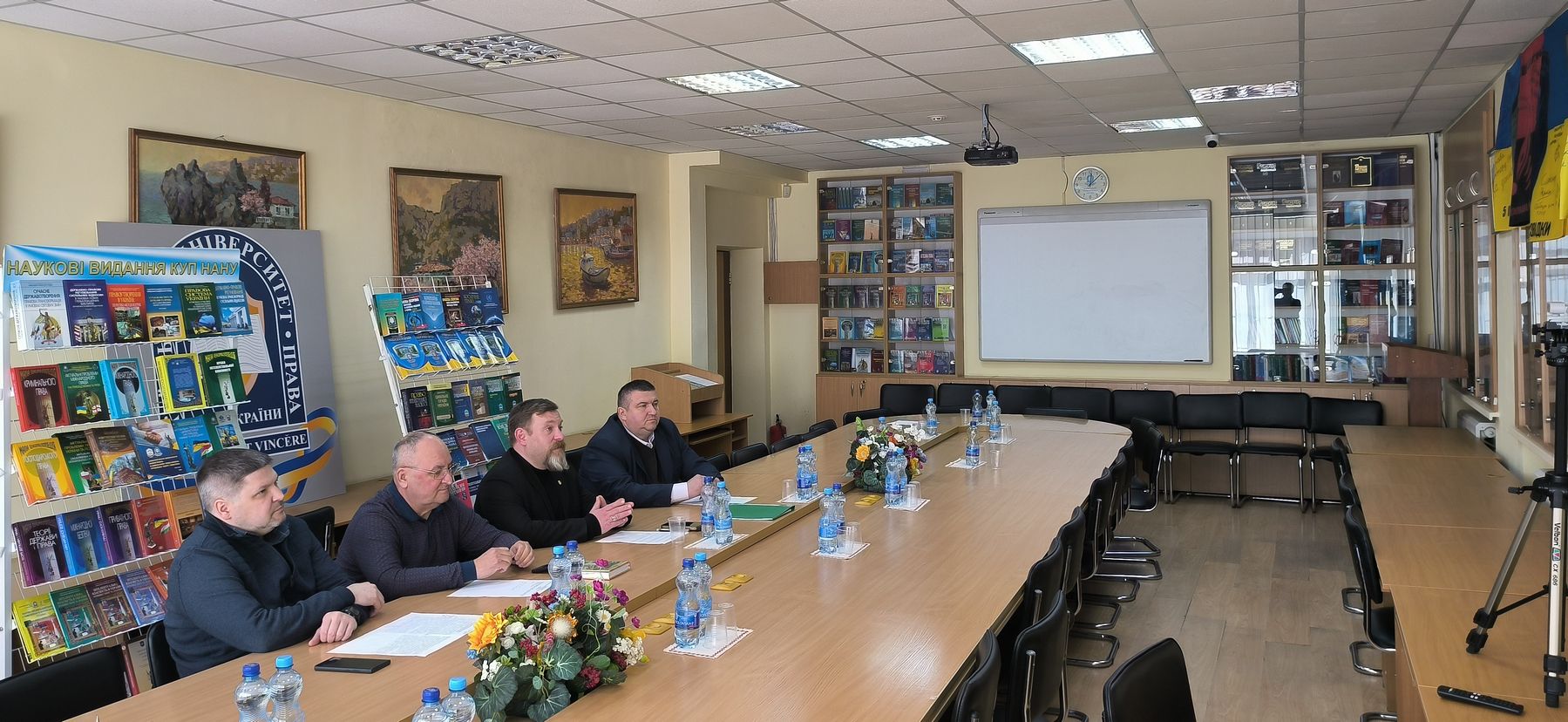 Перед майбутніми випускниками та потенційними абітурієнтами виступили Учений секретар університету, завідувач кафедри кримінального права та процесу, кандидат юридичних наук Валерій АНДРУСІВ, завідувач кафедри загальнотеоретичних правових та соціально-гуманітарних дисциплін, кандидат юридичних наук, доцент Сергій МАТВЄЄВ, які розповіли про історію створення та становлення нашого навчального закладу, специфіку навчального процесу, структуру університету, його відділені структурні підрозділи у містах Вінниці, Ужгороді та Львові. Цікавою була інформація про принципи комплектування викладацьких кадрів, серед яких переважну більшість складають колишні та чинні практичні працівники з величезним досвідом роботи у правоохоронних та судових органах, органах юстиції та адвокатури, юридичних та інших підприємствах, організаціях і установах, що створює унікальну можливість для здобувачів вже під час навчального процесу отримувати певні навички майбутньої професії.