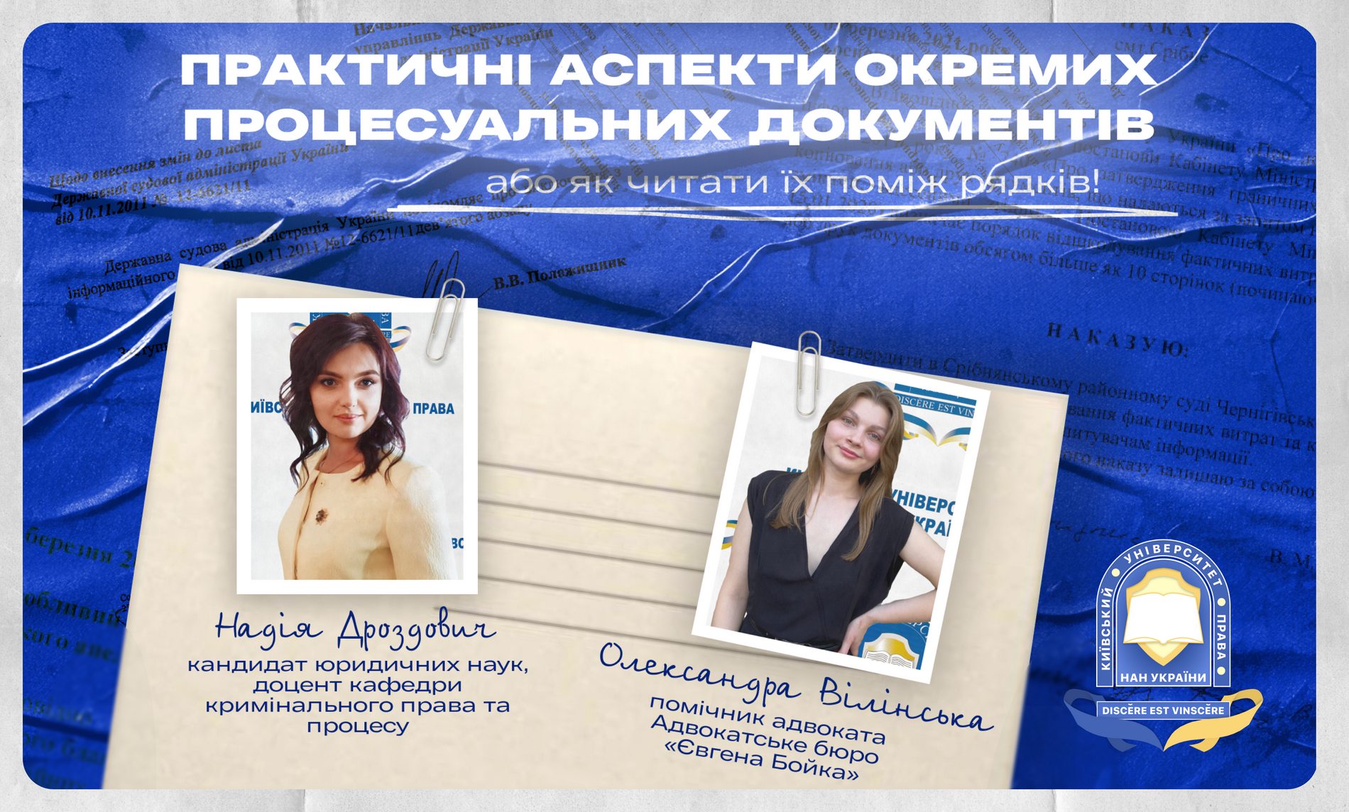 27 травня у Київському університеті права НАН України відбувся майстер-клас у форматі онлайн на тему «Практичні аспекти окремих процесуальних документів або як читати їх поміж рядків».