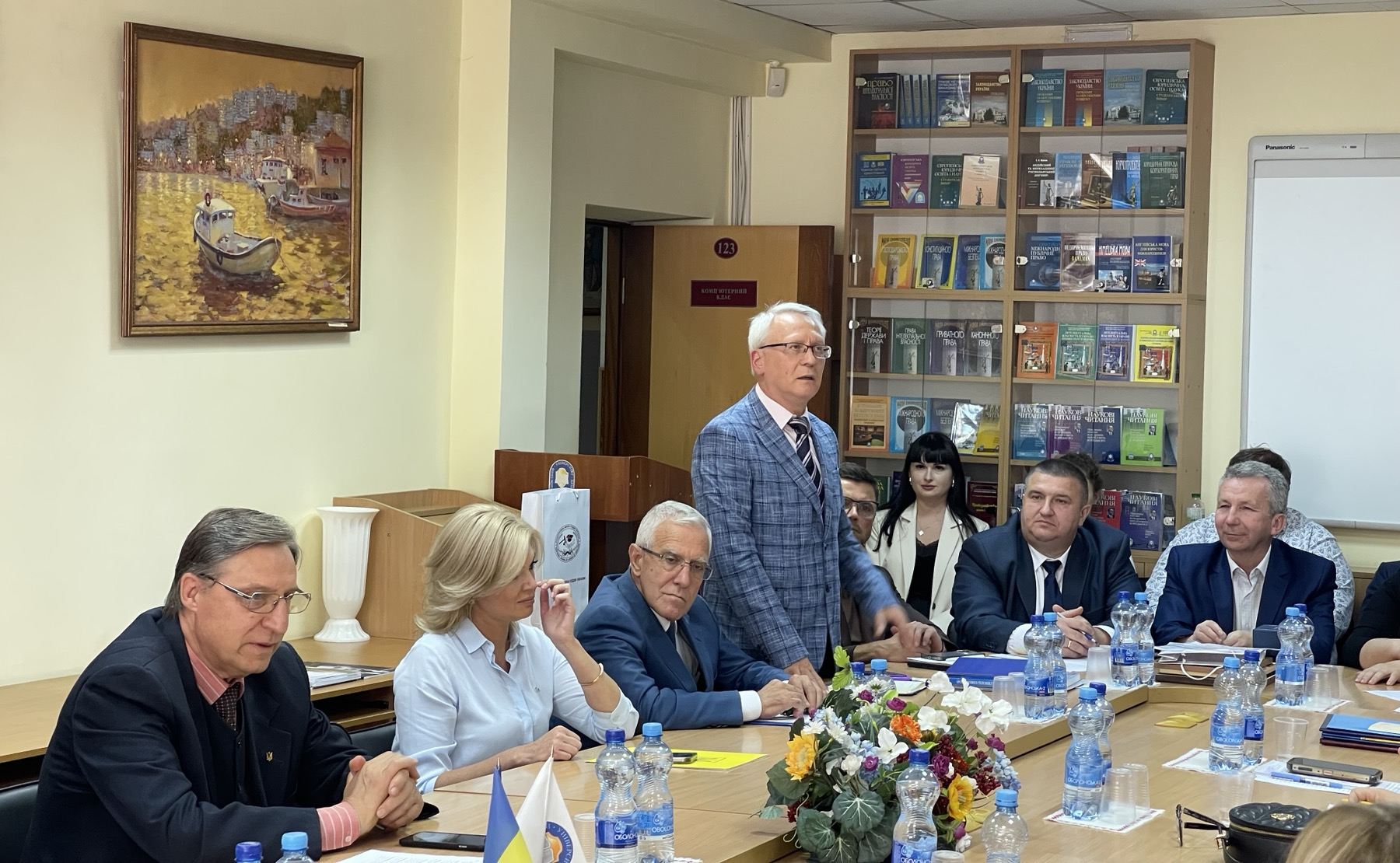 Володимир Устименко, член-кореспондент НАН України, директор Державної установи “Інститут економіко – правових досліджень імені В.К. Мамутова НАН України”, підкреслив успіхи КУП НАНУ на ниві освіти і науки, а також про багаторічну плідну наукову співпрацю обох установ та передав спільні наукові видання, які нещодавно побачили світ.