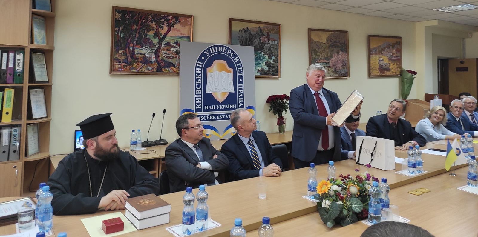 Також він оголосив подяку ректорові від НАН України за багаторічну плідну наукову, науково-організаційну і педагогічну працю, високопрофесійні здобутки та вагомий особистий внесок у розвиток юридичної науки ц підготовку нового покоління фахівців з високим рівнем кваліфікації.
