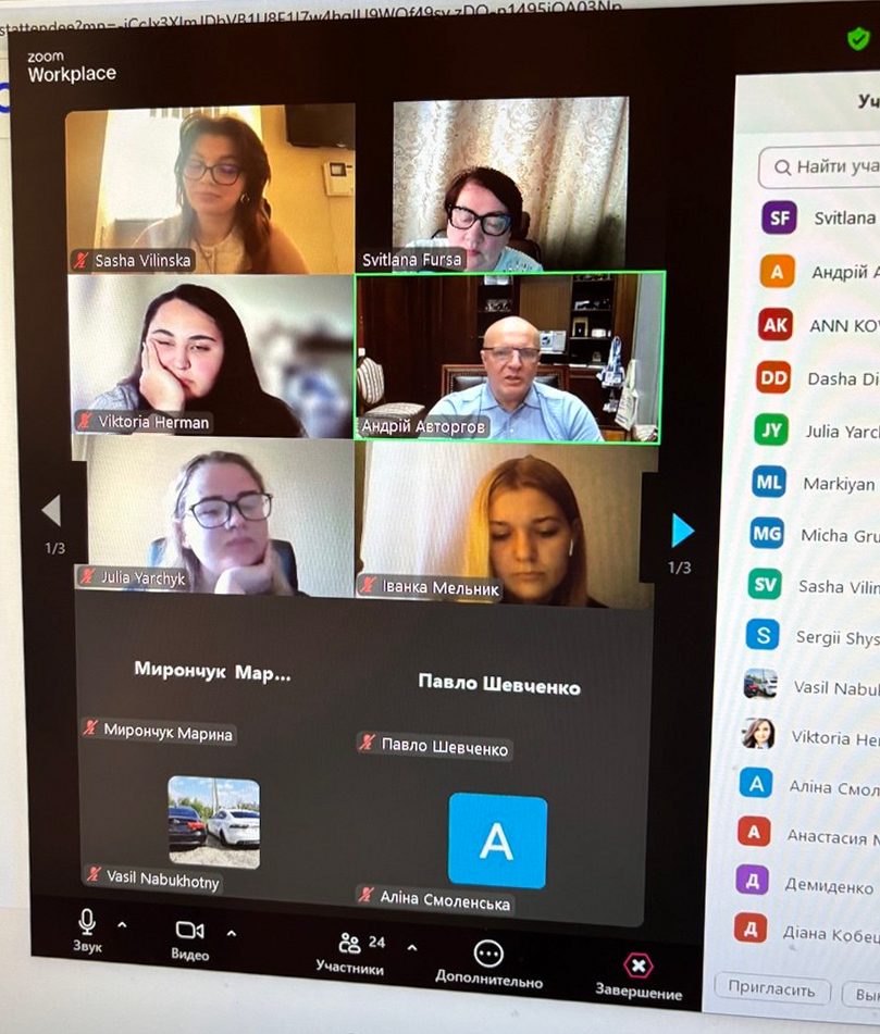 Світлана Ярославівна представила лектора кандидата юридичних наук, досвідченого приватного виконавця виконавчого округу міста Києва Авторгова Андрія Миколайовича, який прочитав лекцію на тему “Практичні аспекти виконавчого провадження в умовах воєнного стану: досвід міжнародного співробітництва та виклики сьогодення”.