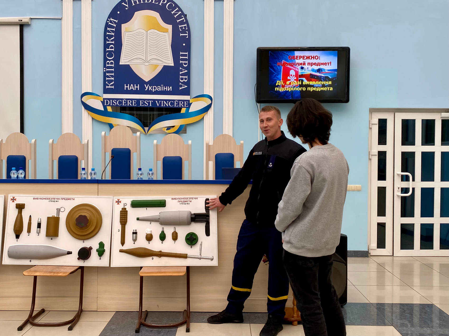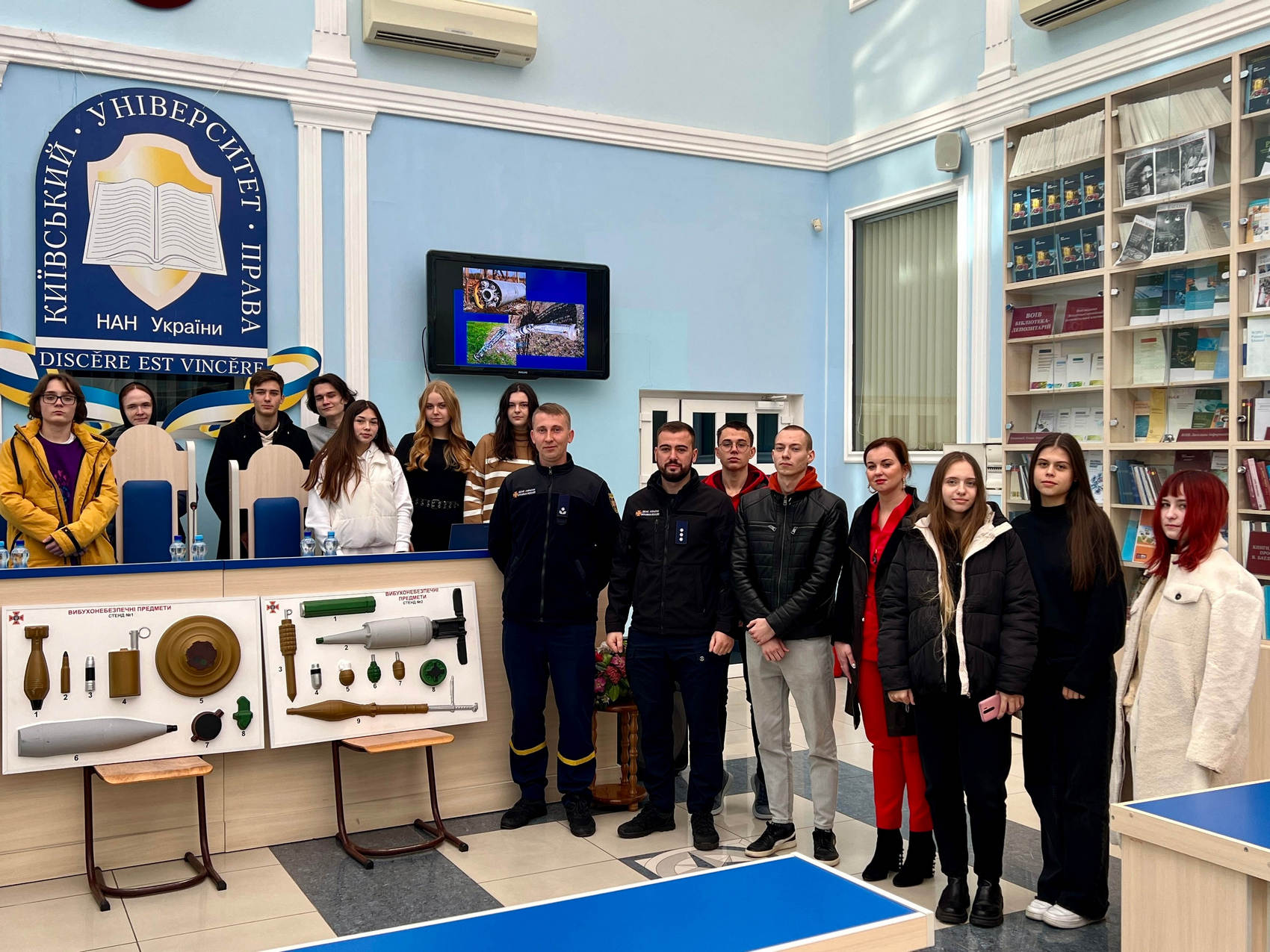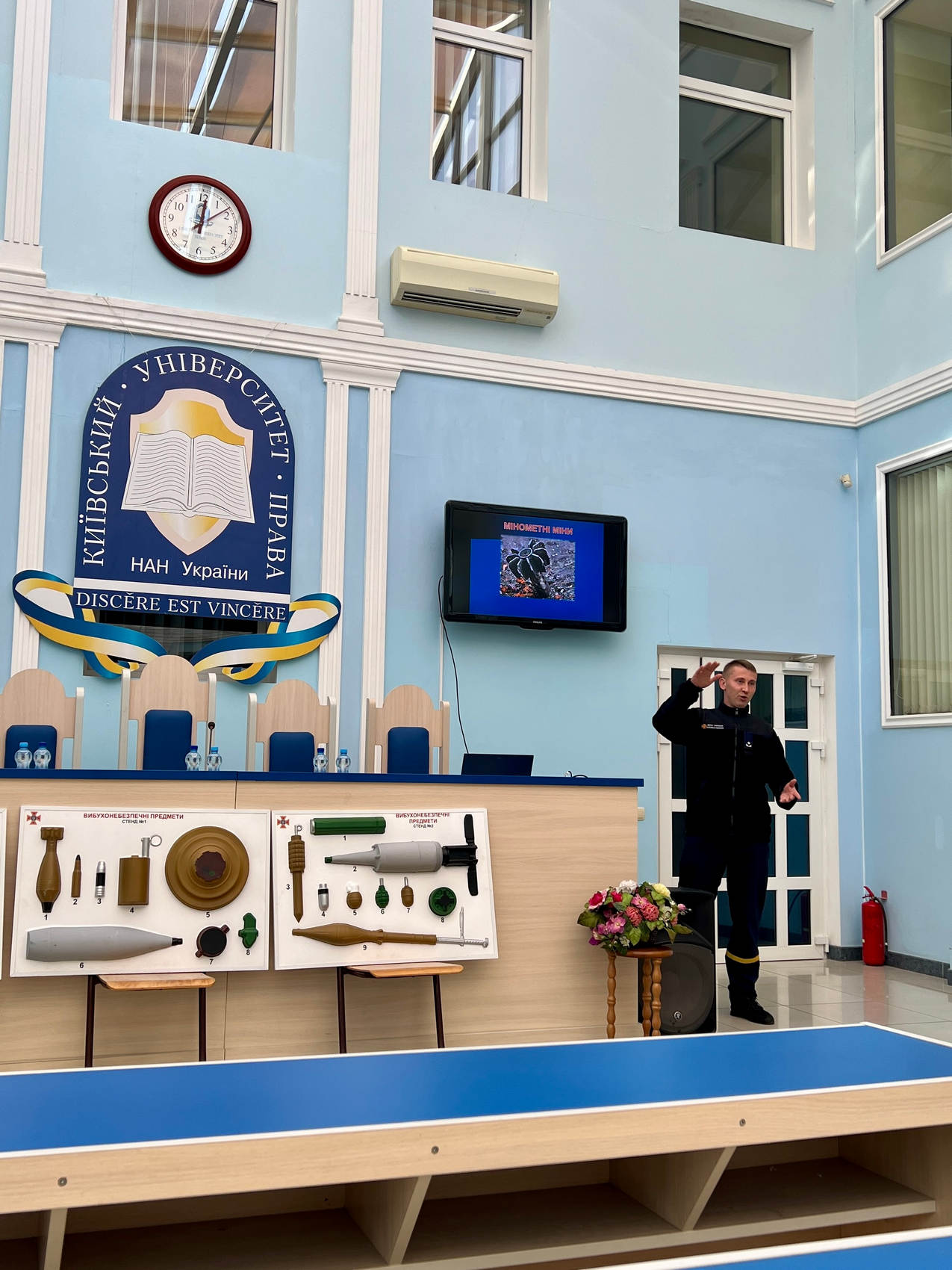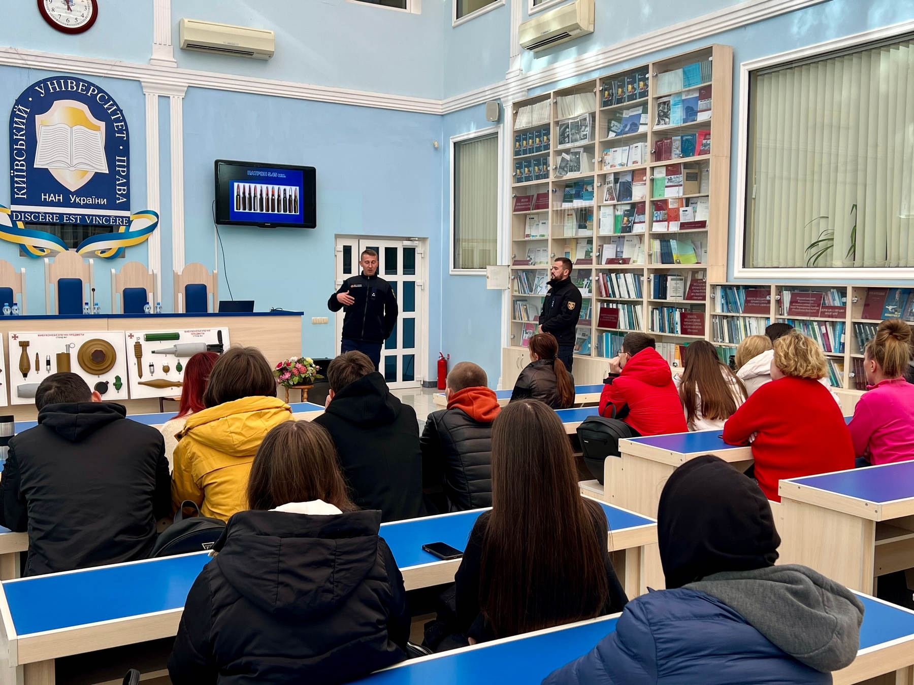 19 жовтня 2023 р. в Київському університеті права НАН України пройшла лекція з техніки безпеки від представників ДСНС, у якій взяли участь студенти першого курсу, а також трудовий колектив.