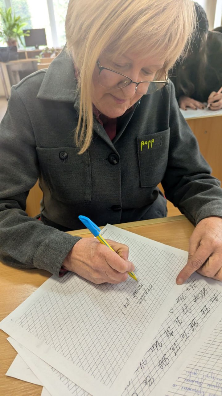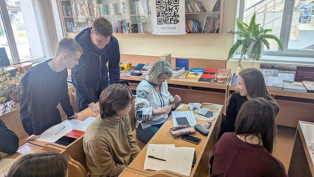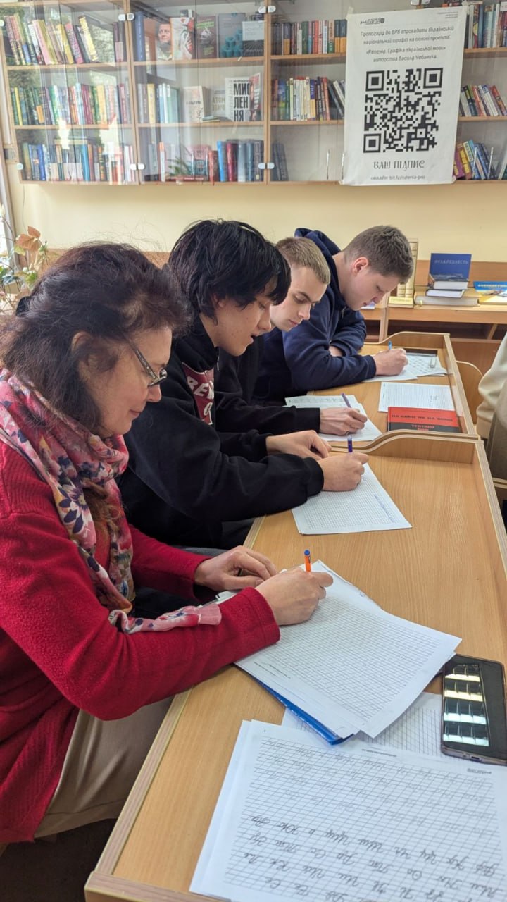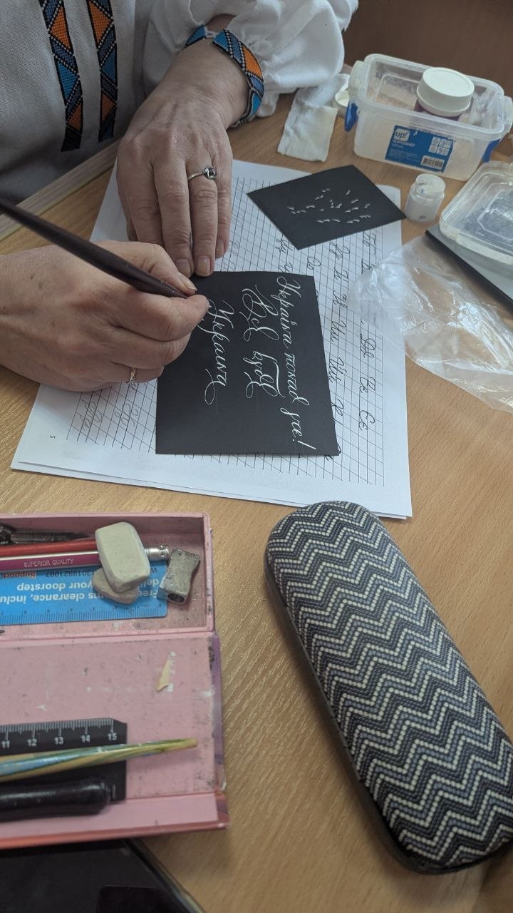 Також студенти мали можливість власноруч створити напис “Україна понад усе” РУТЕНІЄЮ, дізнатись чому саме назва «Рутенія» та така дивна рутенська літера «Р» з хвостиком, графему якої ніколи не сплутаєш з латинською графемою літери «П»? Скільки років символу (графемі) головної літери української абетки? На ці та ще сотні питань відомої світу історії, але покладені в схованки історичних брехунців, відповідає видання «Буття та обʼявлення української мови» – історичної складової проєкту “Рутенія. Графіка української мови”.