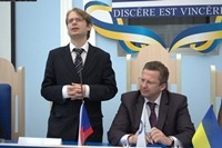 До учасників конференції з привітальним словом звернувся доктор юридичних наук Павел Клім – доцент приватного університету Метрополітен у м. Прага (Чеська Республіка), член Асоціації юристів Чехії, в якому, зокрема, зазначив про необхідність гармонізації законодавства України з правом Європейського Союзу.