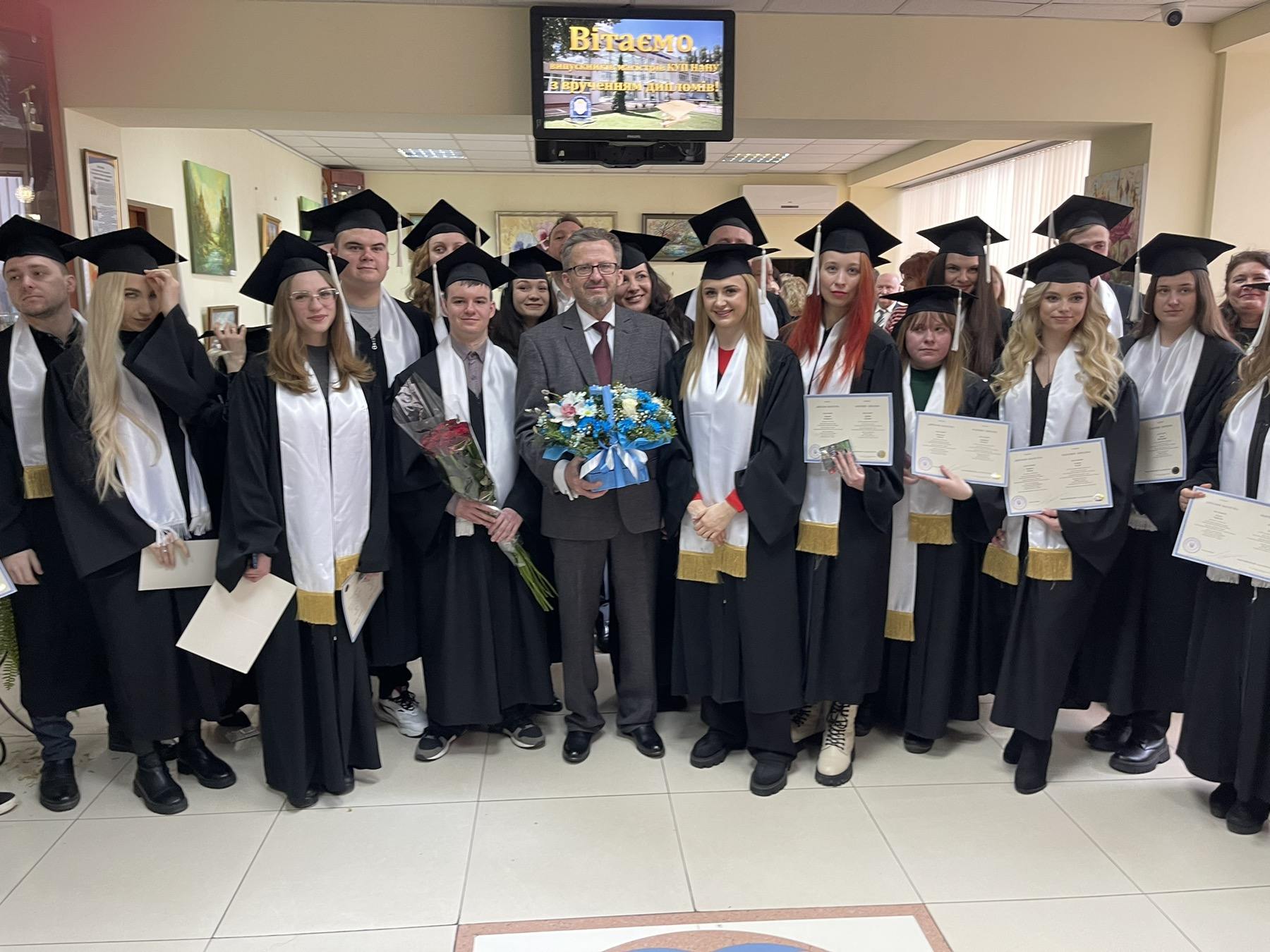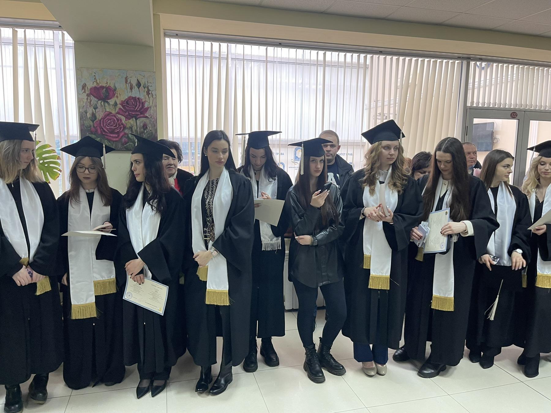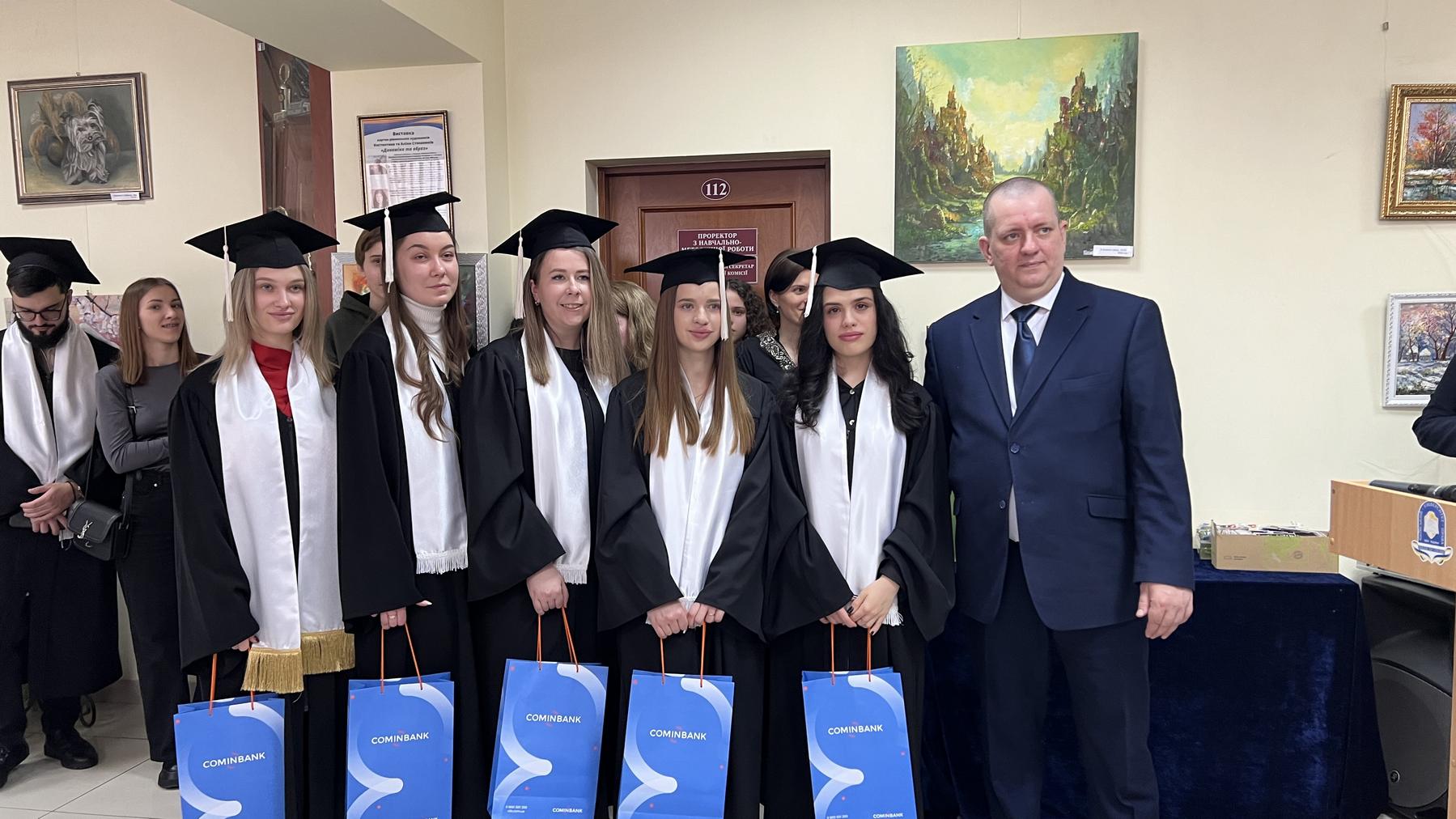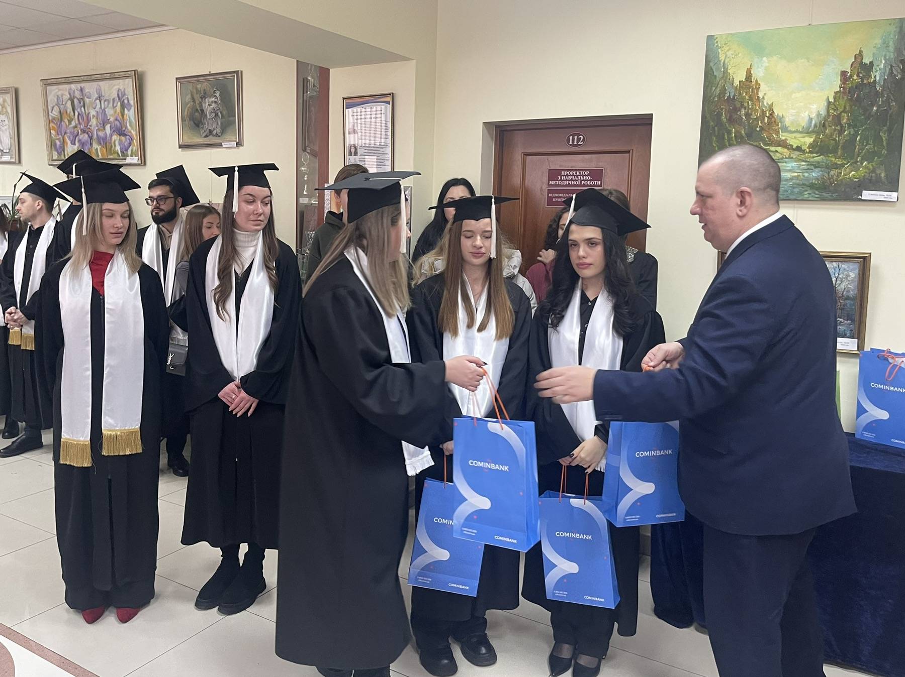 До випускників з вітальним словом звернулися начальник управління з продажів корпоративних продуктів CominBank Максим Фліссак; директор відділення ПриватБанк Тетяна Конохович; керівник напрямку зарплатних карток приват Банку Ірина Нєкрасова; директор Благодійної організації «Благодійний фонд «Всеукраїнська волонтерська спільнота «Для українців» Альона Назаренко. Вони щиро привітали нових фахівців та побажали їм успіхів у побудові майбутньої кар’єри.