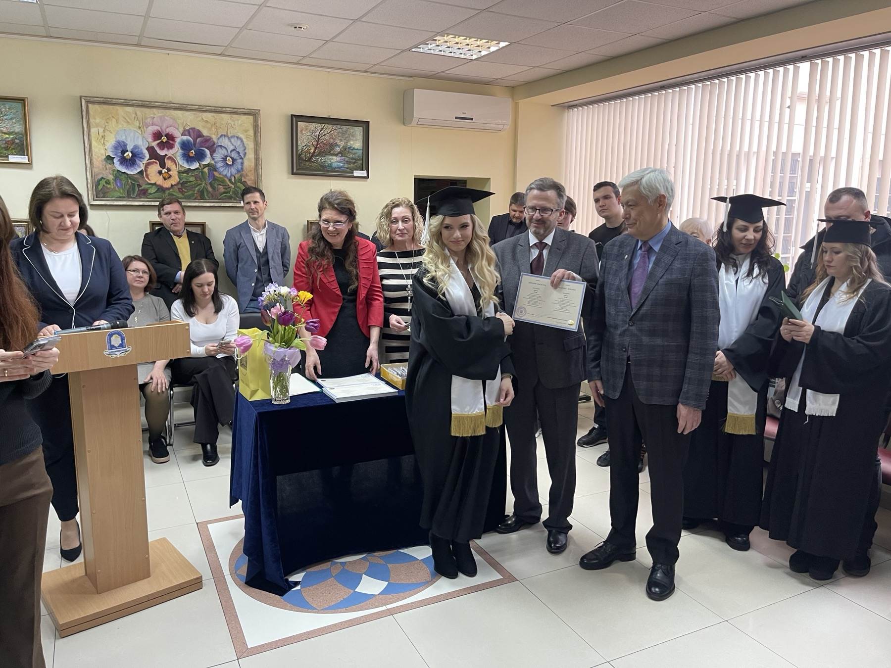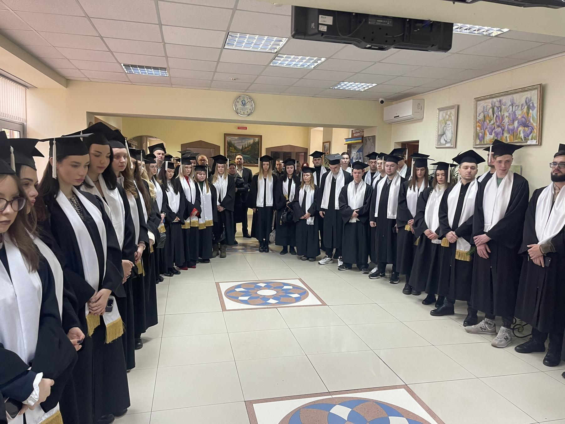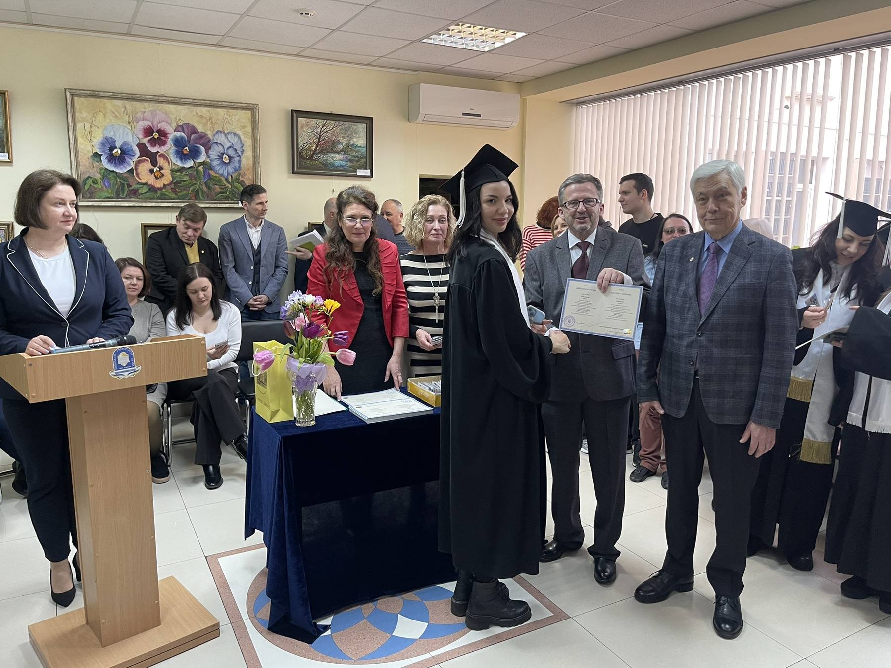 Після всіх привітань, проректорка з навчально-методичної роботи Олена Антонова оголосила наказ «Про завершення навчання», на підставі якого здобувачам вищої освіти другого (магістерського) рівня присуджено освітні ступені та видано документи про освіту. Дипломи отримали 93 магістр, із них – 24 дипломи з відзнакою.