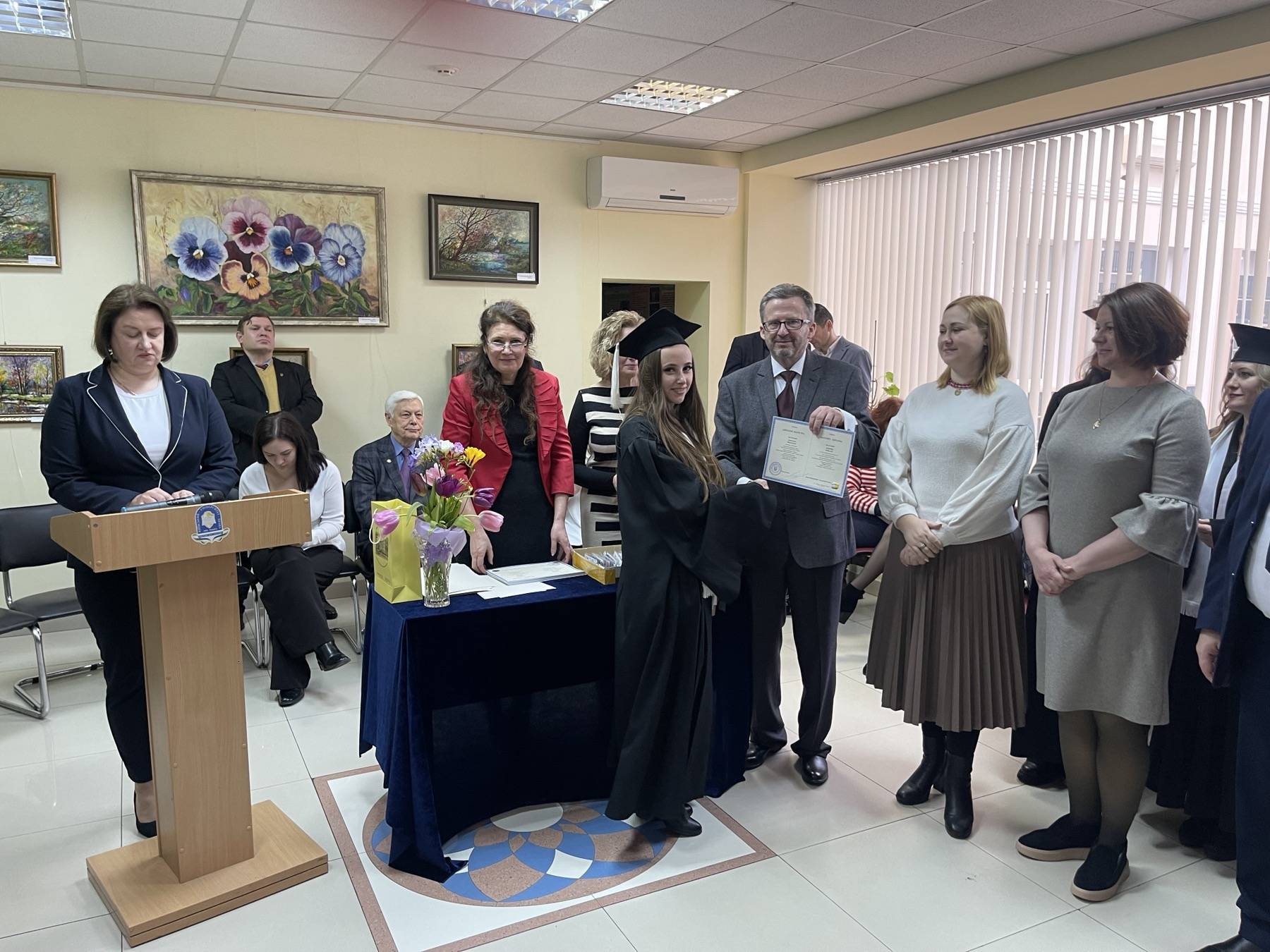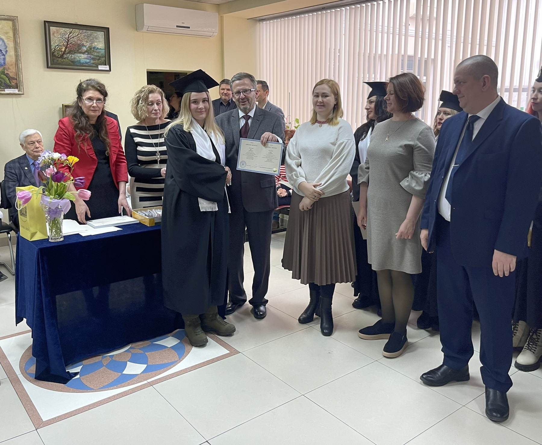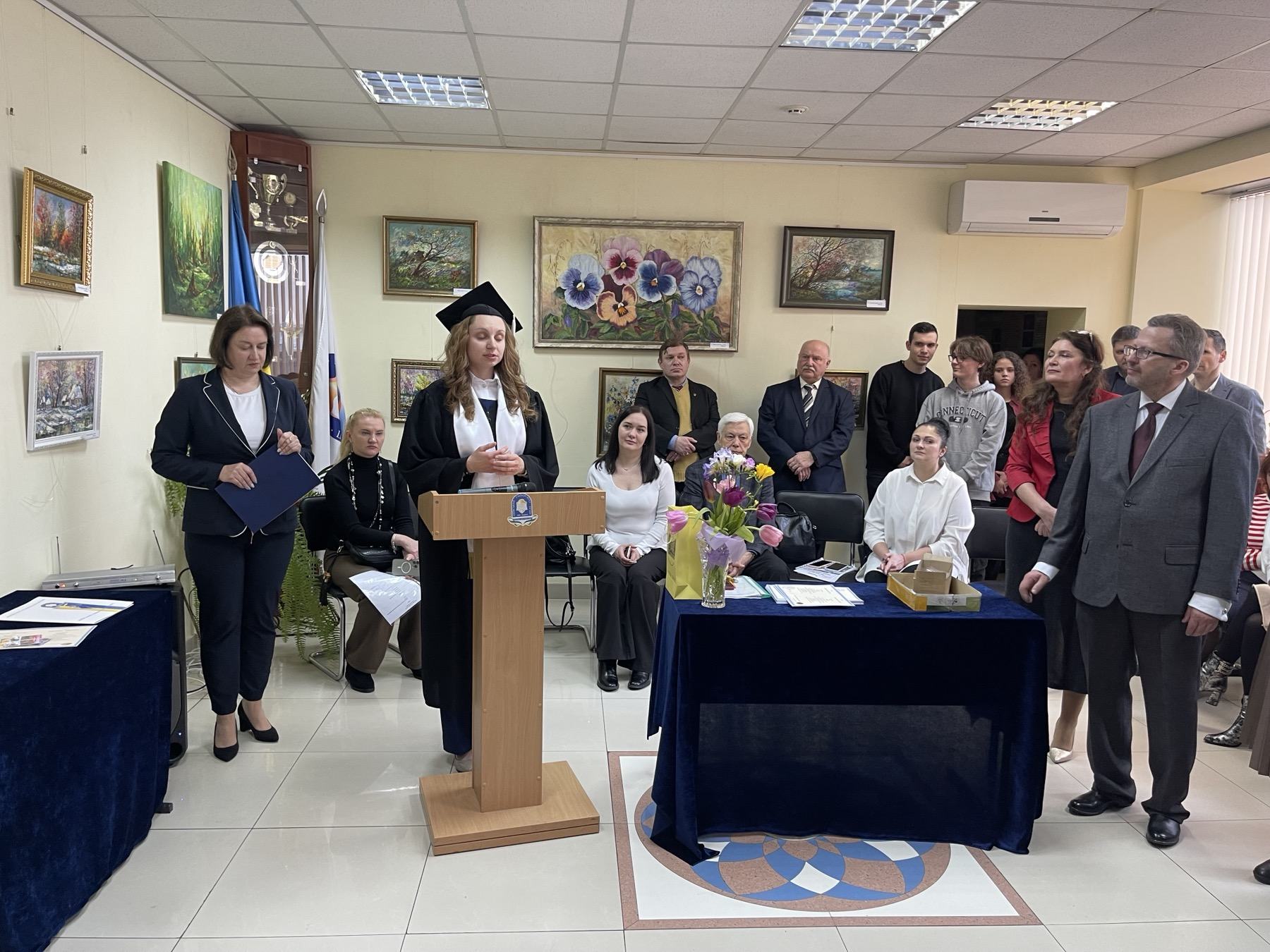 Після всіх привітань, проректорка з навчально-методичної роботи Олена Антонова оголосила наказ «Про завершення навчання», на підставі якого здобувачам вищої освіти другого (магістерського) рівня присуджено освітні ступені та видано документи про освіту. Дипломи отримали 93 магістр, із них – 24 дипломи з відзнакою.