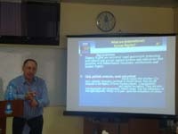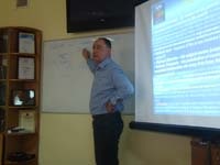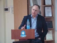 Тема майстер-класу: «Суть міжнародного права в галузі прав людини». Розкриваючи суть міжнародного права, пан Скурбаті наголосив на тому, що головна відмінність міжнародного права від національного – відсутність механізму примусу. Саме цим обумовлена особлива роль міжнародних декларацій та конвенцій у механізмі захисту прав людини. Також у своїй доповіді професор Скурбаті зауважив важливість правильного визначення обставин за яких правопорушення визначається як «порушення прав людини». Для того щоб студенти краще зрозуміли суть поняття «порушення прав людини» Алан Скурбаті навів приклади зі своєї практики. Як зазначив професор, незважаючи на те, що вже було багато зроблено на цьому терені не тільки ООН, а й ЄС, тема захисту прав людини ще довго не втрачатиме своєї актуальності, і найкращим доказом цього є його практика при Європолі в Афганістані.