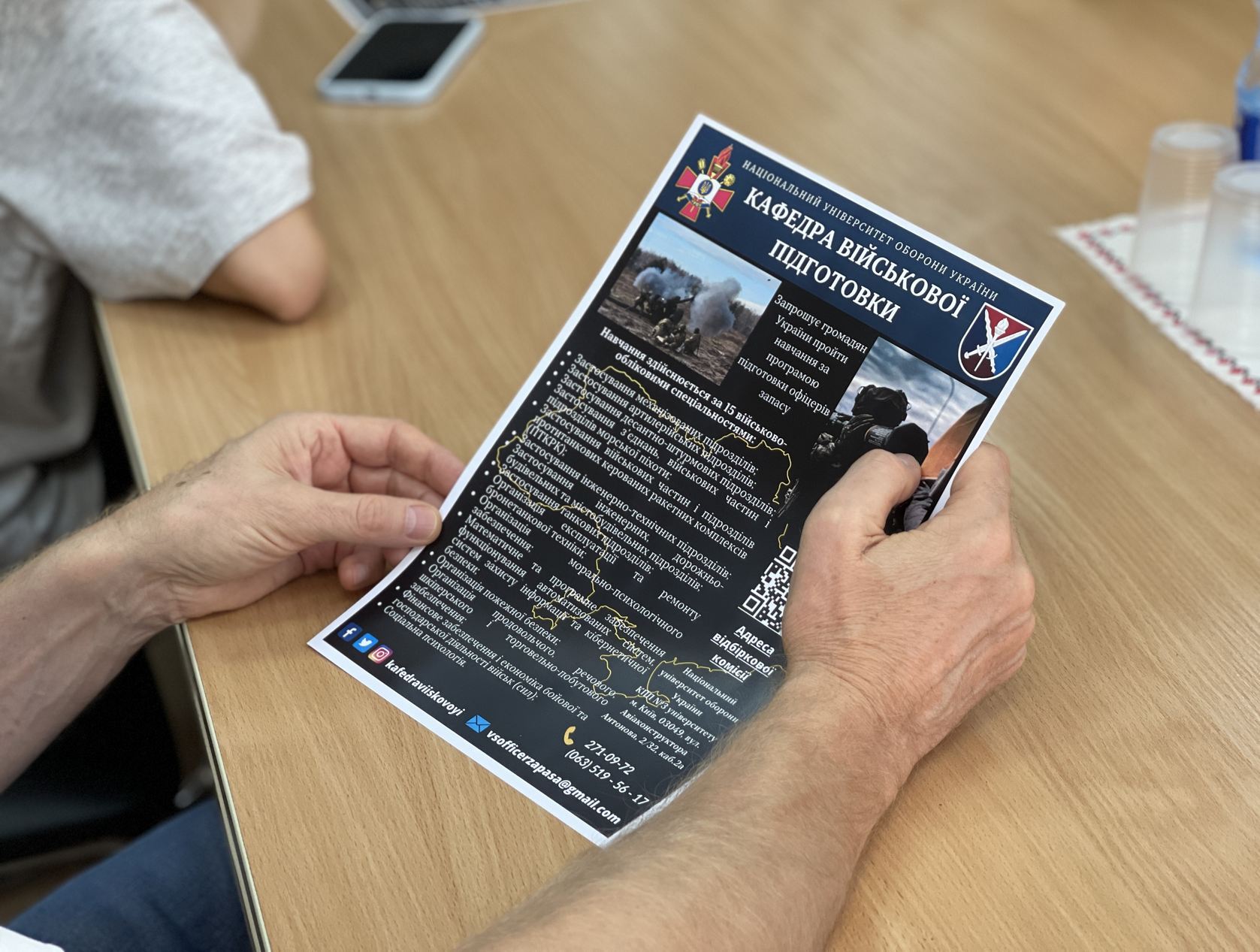 Старша викладачка кафедри військової підготовки Наталя Солошенко окреслила основні особливості та переваги навчання військовій справі зараз і нагадала усім про значущість вибору військового шляху навчання у будь-якому віці. Студентів і співробітників познайомили з інформацією про кафедру, спеціальностями та видами навчання, доступними в Національному університеті оборони України.