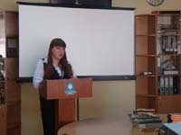 Студентка 5 курсу КУП НАНУ Т. Мачихіна виступила з доповіддю на тему: «Гармонізація прав винахідника і прнав роботодавця в контексті службового винаходу».