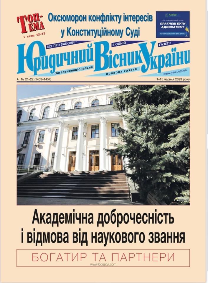 В загальнонаціональній правничій газеті «ЮРИДИЧНИЙ ВІСНИК УКРАЇНИ» вийшла стаття ректора та завідувачки кафедрою КУП НАН України