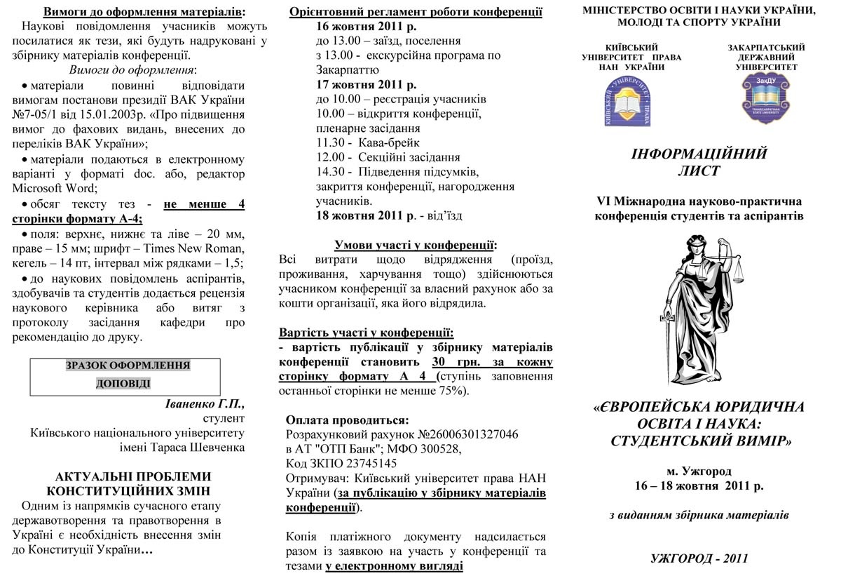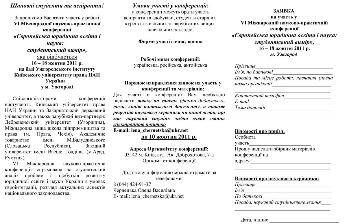 VІ Міжнародна науково-практична конференція студентів та аспірантів «ЄВРОПЕЙСЬКА ЮРИДИЧНА ОСВІТА І НАУКА: СТУДЕНТСЬКИЙ ВИМІР»