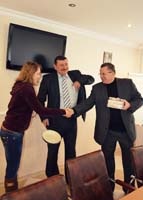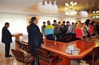 Під час перебування ректора КУП НАНУ, професора Ю.Л. Бошицького у Рівненській філії університету, не зважаючи на напружений графік, ректор знайшов час і для зустрічі з колективом та студентством інституту. В зв’язку з останніми подіями, Юрій Ладиславович підтримав усіх, хто був причетний до Майдану, і висловив свої міркування з приводу реалізації стратегічної мети РІ КУП НАНУ – інтеграції у європейський правовий та освітній простір. Так само на зустрічі ішлося про завершення робіт з метою модернізації навчального корпусу РІ КУП НАНУ, вступну кампанію 2014 року та інші, не менш важливі питання. Насамкінець ректор вручив подарунки кожному із підрозділів інституту.