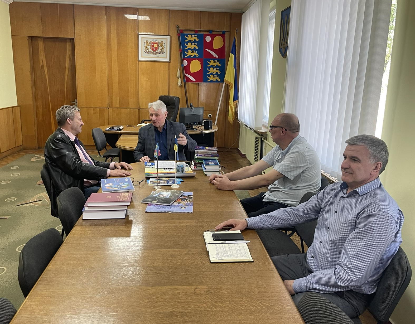 Традиційно, на завершення зустрічі, ректор Юрій Бошицький передав для бібліотек та шкіл Жидачівської міської територіальної громади юридичну літературу в рамках нового спільного проєкту КУП НАНУ та столичним видавництвом «ЮРІНКОМІНТЕР», з метою популяризації юридичної освіти в регіоні.