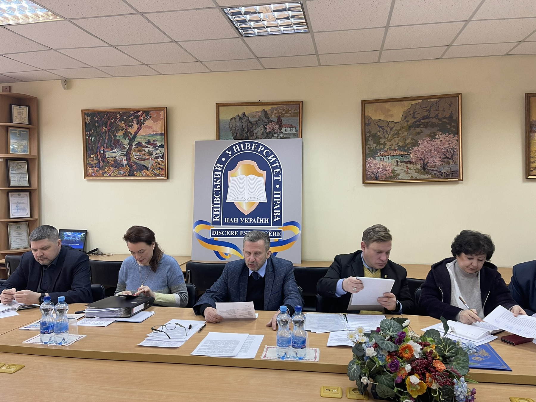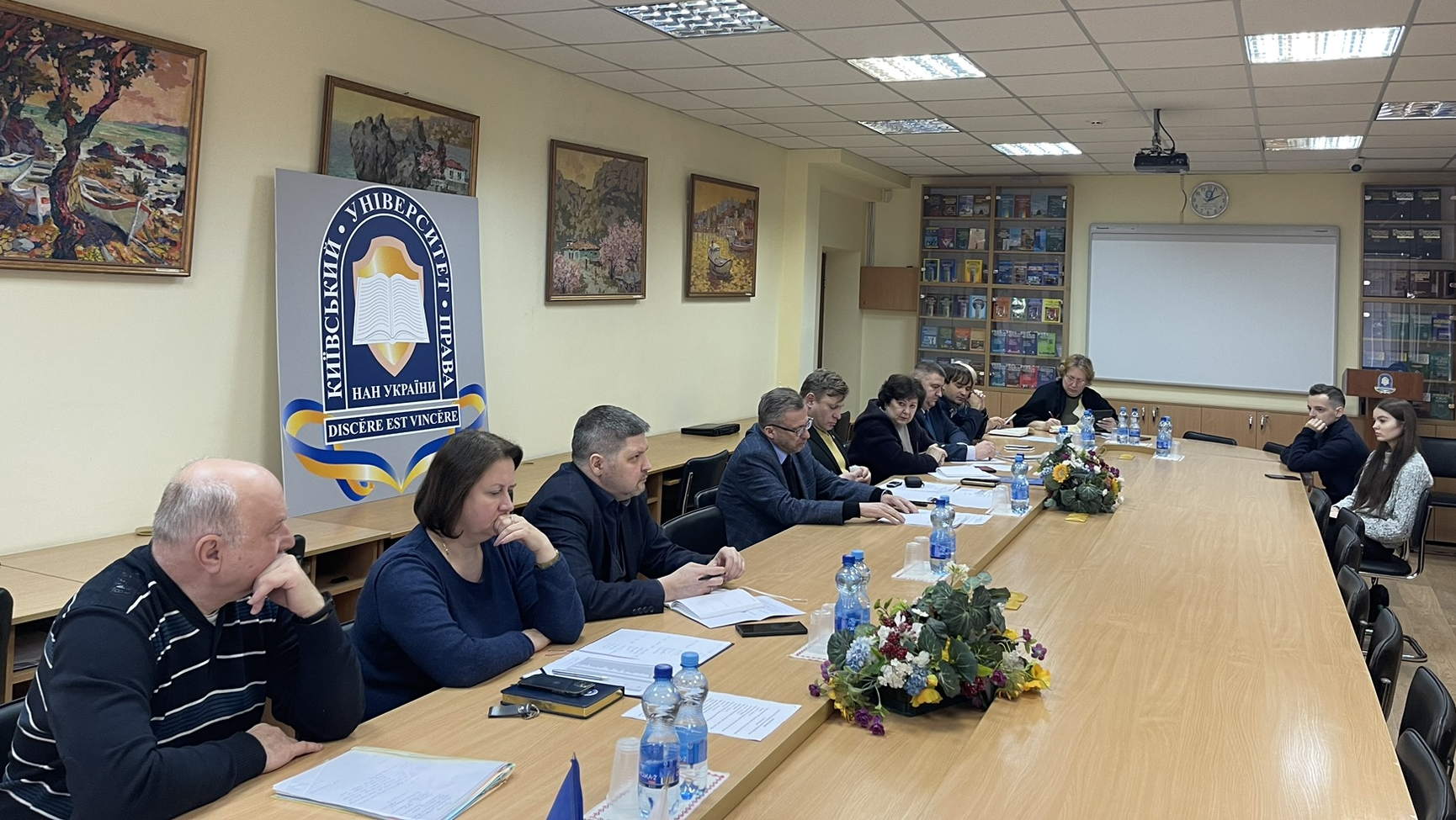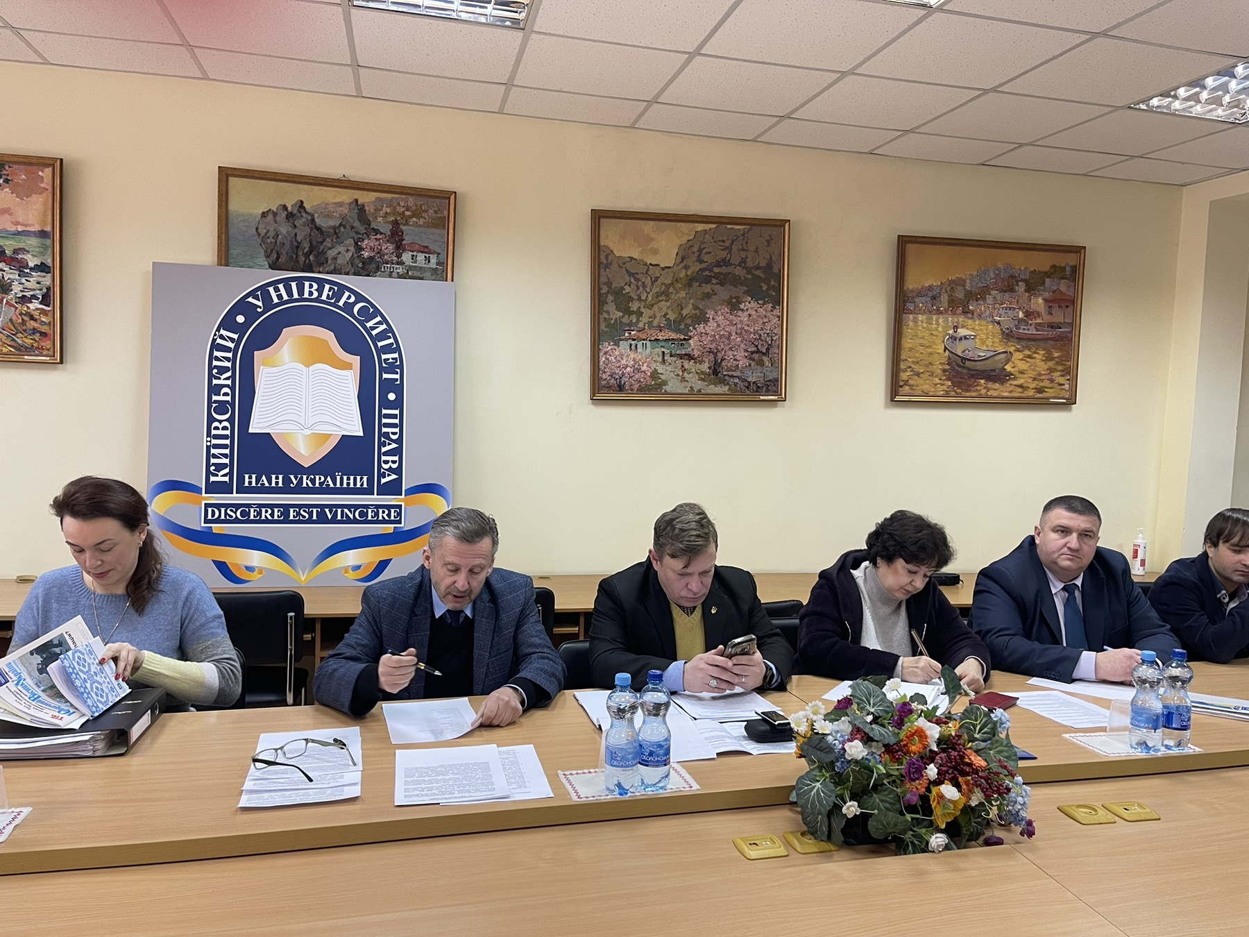 5 лютого 2024 року в КУП НАН України відбулося перше в цьому календарному році та ІІ семестрі поточного навчального року засідання ректорату. Засідання розпочалося з вступного вітального слова ректора КУП НАН України, проф. Юрія Бошицького. У своєму виступі ректор зазначив, що попри канікулярний період на початку року, робота в КУП НАН України ні на мить не зупинялася і завдяки цьому ми можемо похвалитися позитивними здобутками як на науковій ниві, так і в галузі профорієнтаційної діяльності. Так, студентка 3 курсу денної форми навчання Київського університету права НАН України Олександра Вілінська виборола переможне І місце за наукову роботу «Проблематика молодіжної політики сучасності» на ІІ Всеукраїнському конкурсі наукових робіт серед молоді імені Олександра Яременка «Актуальні проблеми молодіжної та сімейної політики», що проводився на базі УДУ імені Михайла Драгоманова. Також було відмічено здобуття почесної бронзової нагороди студентською командою КУП НАН України на Всеукраїнській студентській олімпіаді з правознавства, що відбулася наприкінці січня 2024 року на базі Юридичного факультету Національного авіаційного університету. Юрій Бошицький зазначив, що КУП НАН України повинен стати впізнаваним освітнім брендом на території України і особливо в тих регіонах, де діють відокремлені структурні підрозділи університету, це буде гарантувати не тільки функціонування нашого закладу вищої освіти, але й його подальший розвиток у сучасних несприятливих умовах воєнного стану, погіршення демографічної ситуації, докорінного реформування законодавства України про вищу освіту. Запорукою цього має бути повсякденна, системна, злагоджена, ефективна профорієнтаційна робота КУП НАН України та його відокремлених структурних підрозділів. Для реалізації цих амбітних планів у січні 2024 року ректор КУП НАН України у плідній співпраці з керівниками відокремлених структурних підрозділів університету особисто провів низку ділових зустрічей для налагодження співпраці КУП НАН України з новими партнерами, результатом яких стало підписання низки меморандумів про співпрацю з головами територіальних громад та очільниками закладів освіти Вінничини, Рівненщини, Львівщини та Закарпаття.