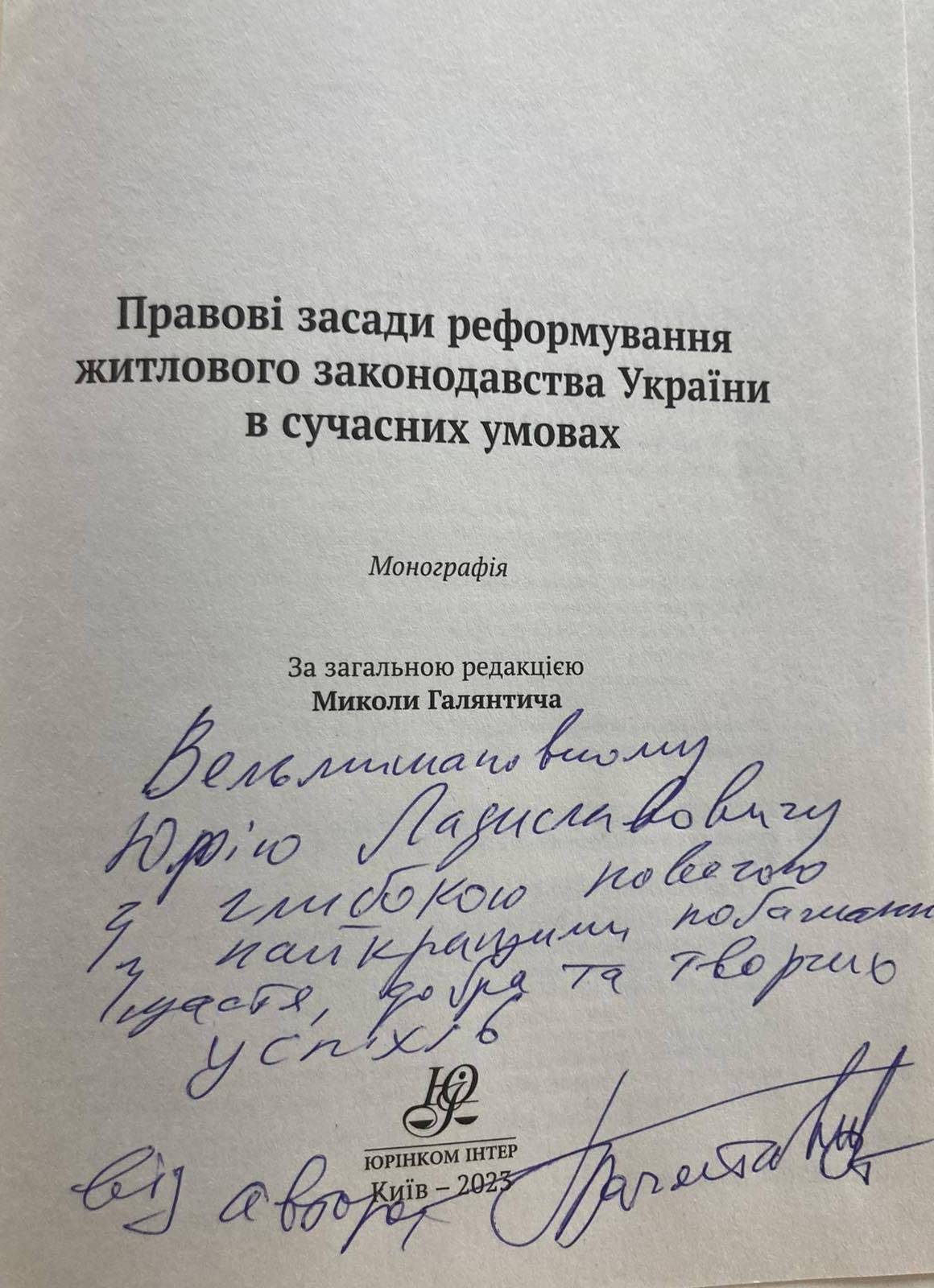 КУП НАН України висловлює глибоку вдячність члену-кореспонденту АПрН України, доктору юридичних наук, професору Миколі Галянтичу за подаровані книги!