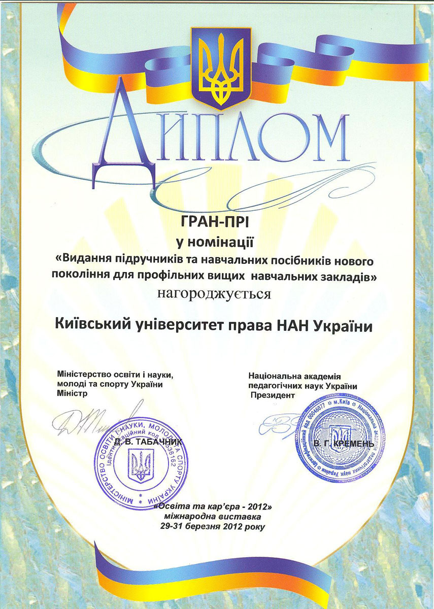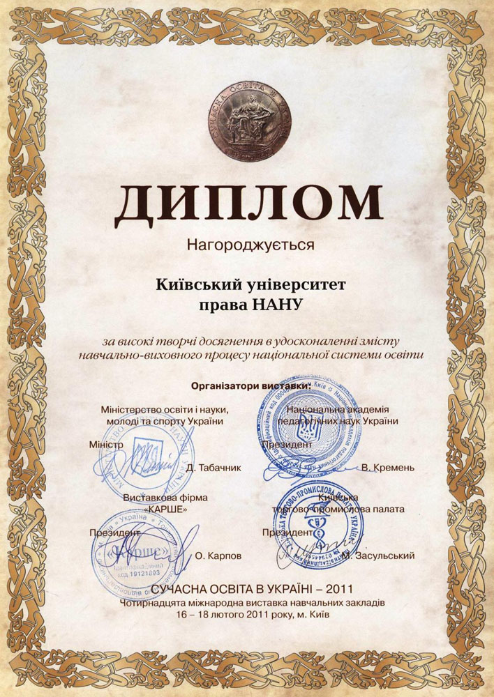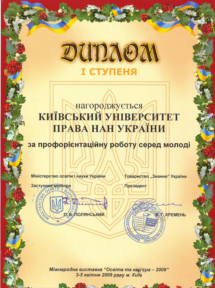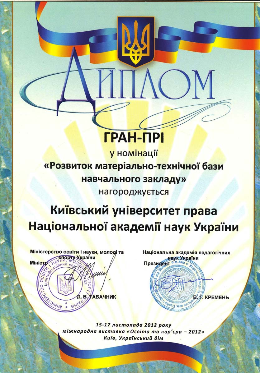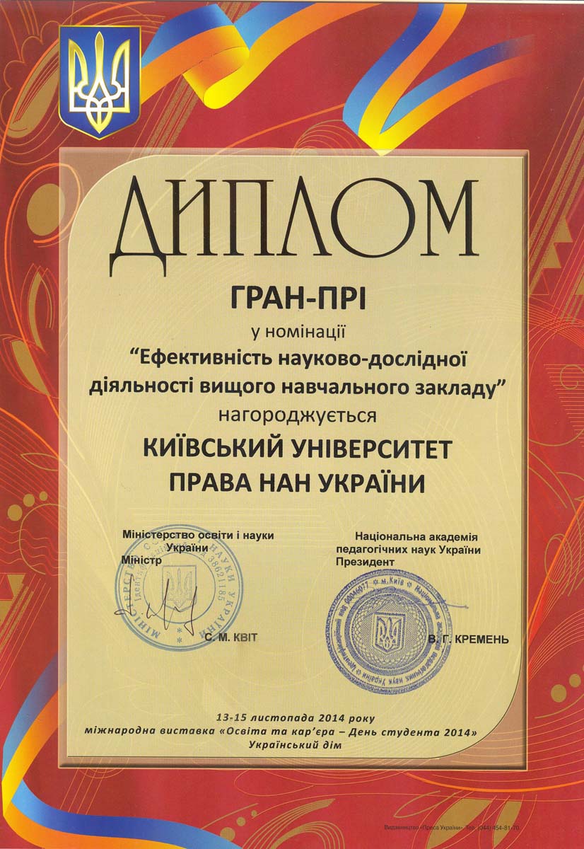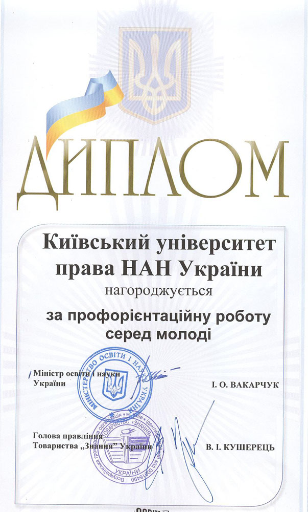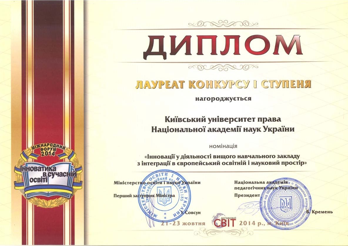 Київський університет права НАН України розвивається і здобуває нові досягнення у підготовці висококваліфікованих правників. Набутий науковий та навчальний потенціал університету та успіхи студентів, засвідчені високими нагородами, засвідчують правильність обраних орієнтирів розвитку, а здобуті в стінах КУП НАНУ знання дають обґрунтованій підстави університету та студентству з оптимізмом дивитися в майбутнє.