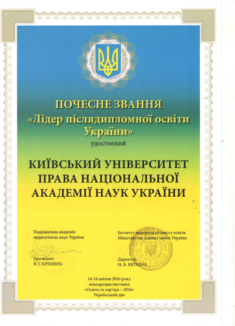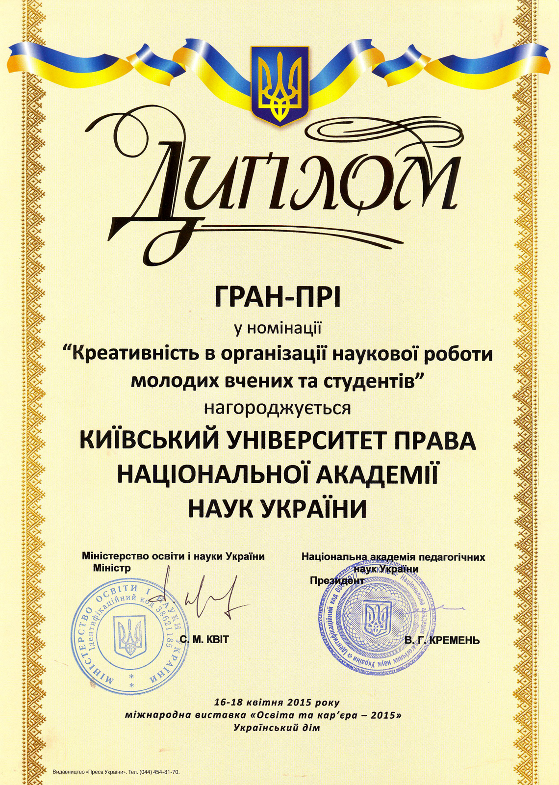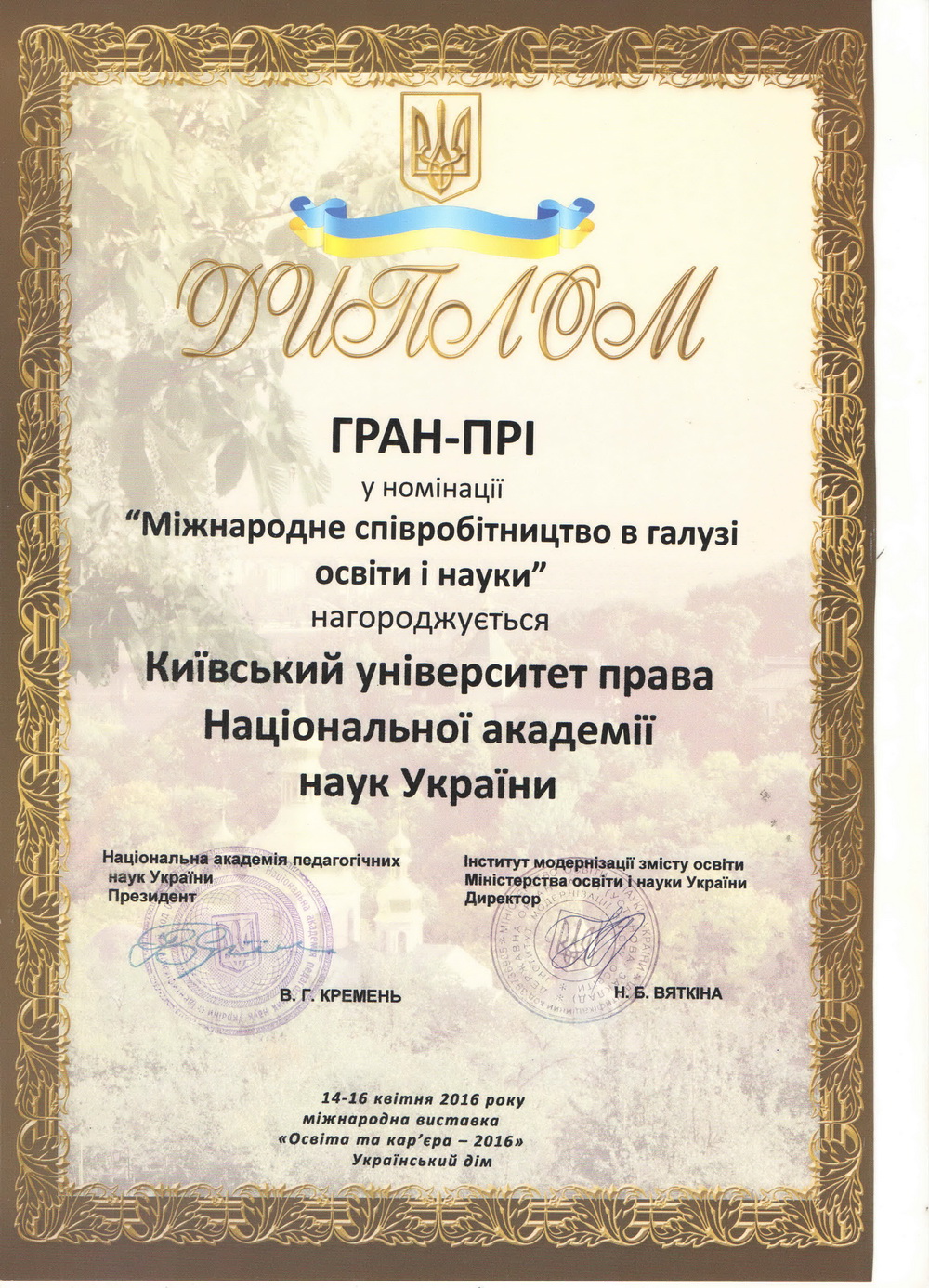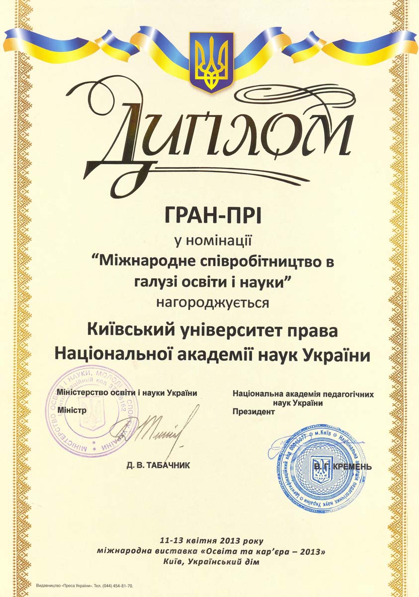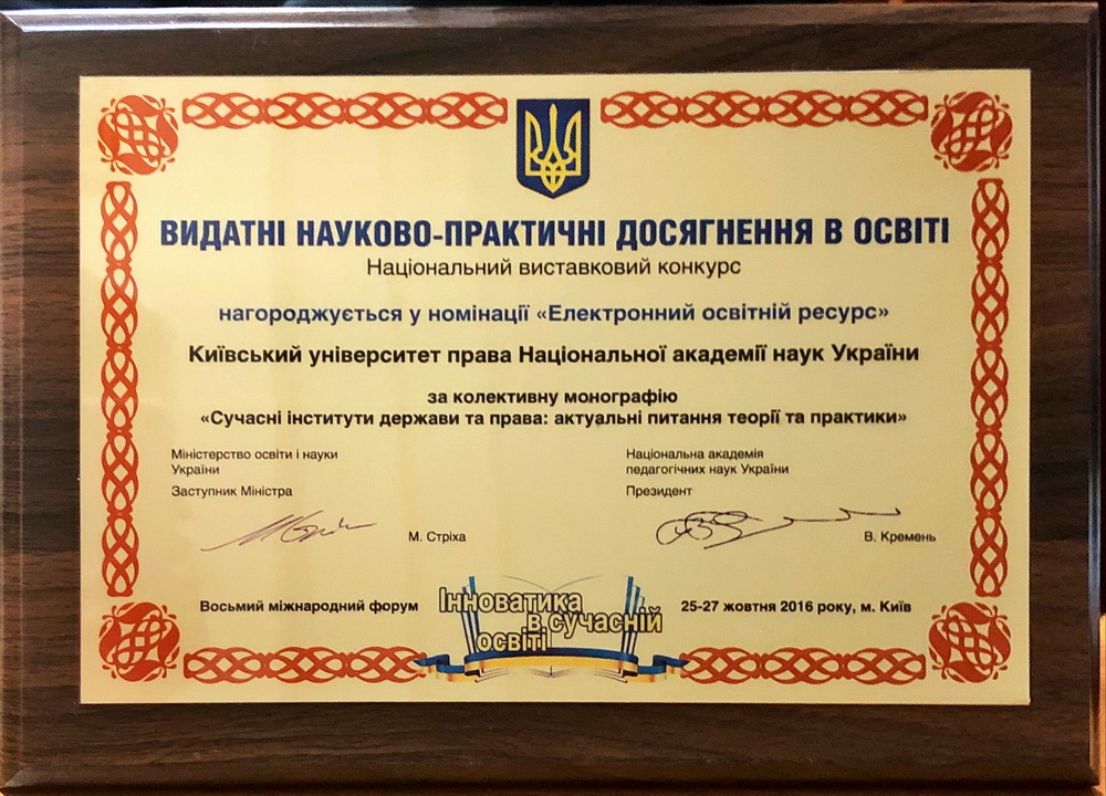 Київський університет права НАН України розвивається і здобуває нові досягнення у підготовці висококваліфікованих правників. Набутий науковий та навчальний потенціал університету та успіхи студентів, засвідчені високими нагородами, засвідчують правильність обраних орієнтирів розвитку, а здобуті в стінах КУП НАНУ знання дають обґрунтованій підстави університету та студентству з оптимізмом дивитися в майбутнє.