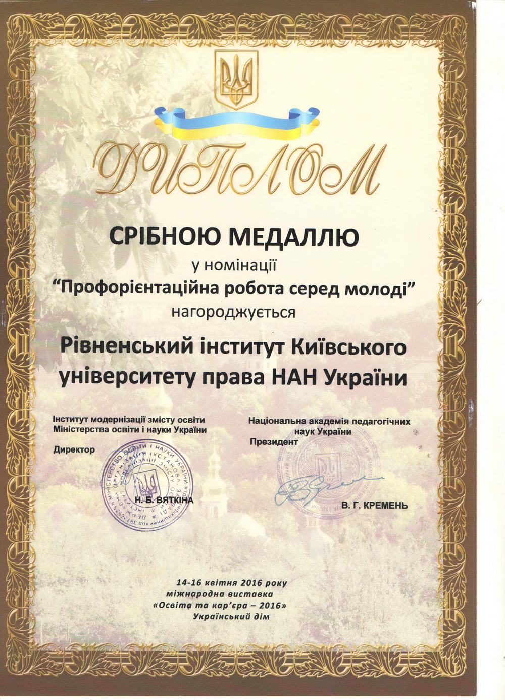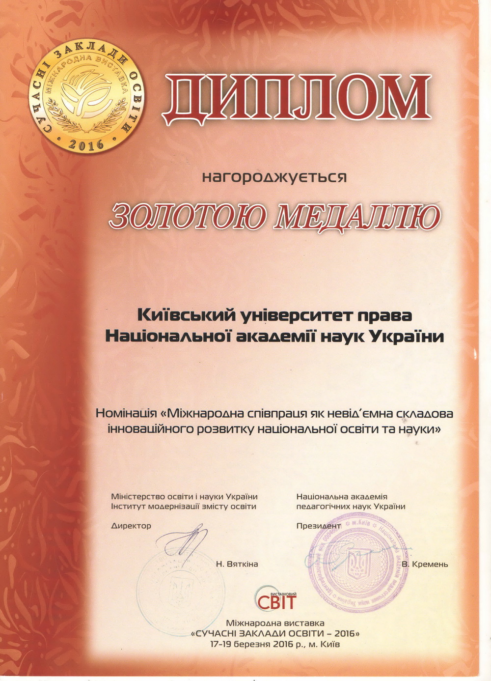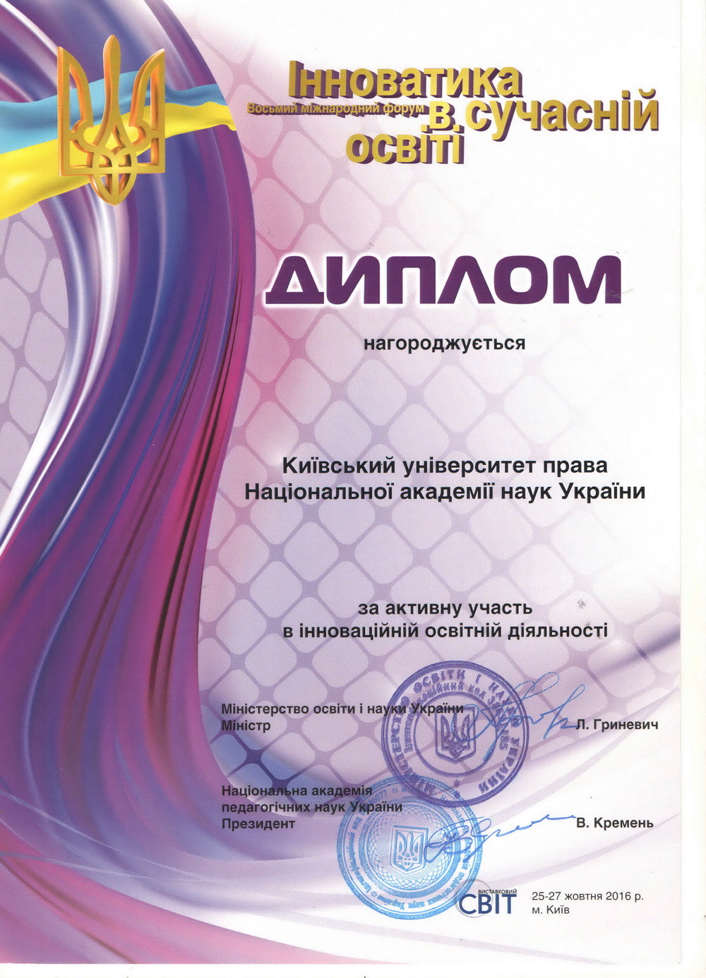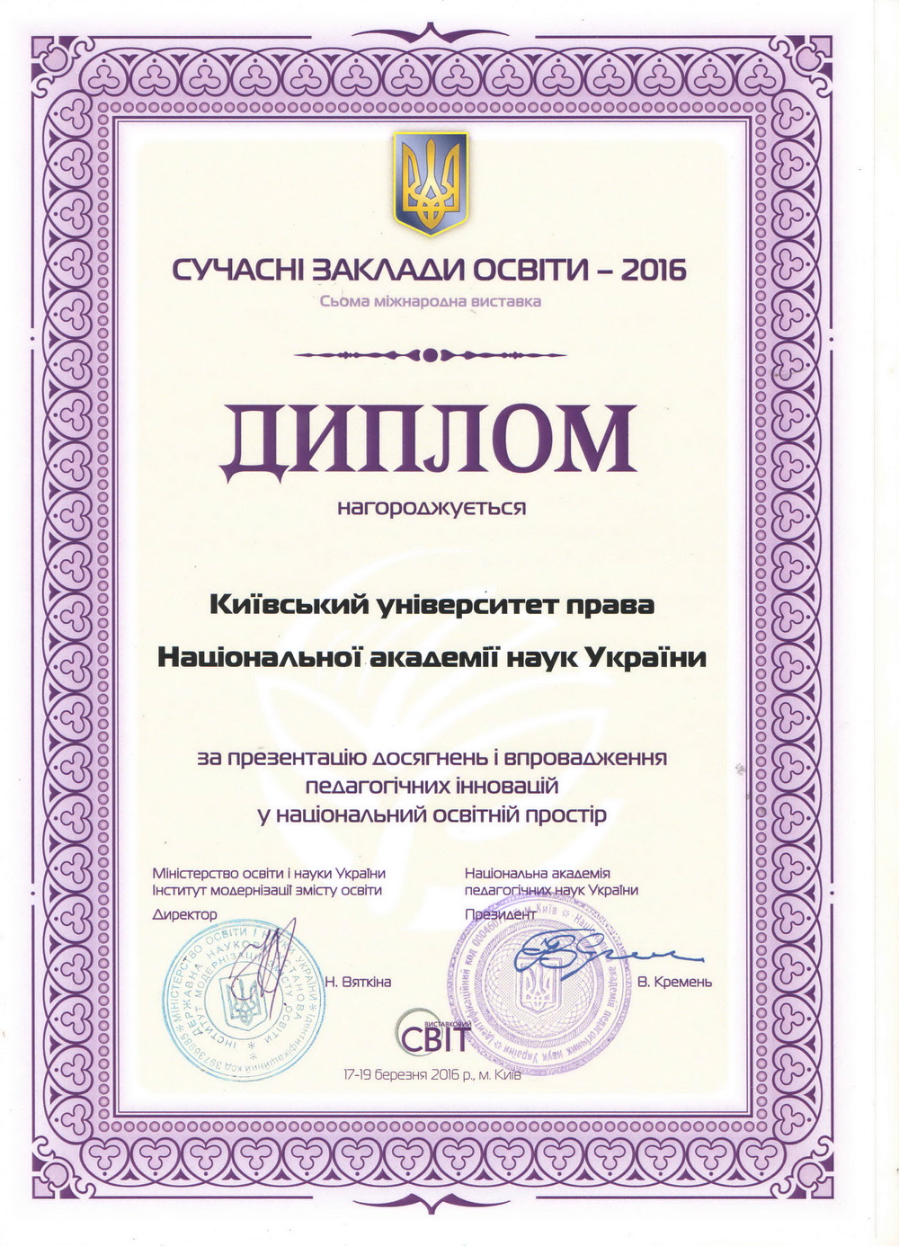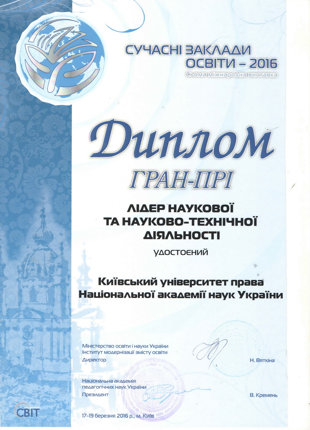 Київський університет права НАН України розвивається і здобуває нові досягнення у підготовці висококваліфікованих правників. Набутий науковий та навчальний потенціал університету та успіхи студентів, засвідчені високими нагородами, засвідчують правильність обраних орієнтирів розвитку, а здобуті в стінах КУП НАНУ знання дають обґрунтованій підстави університету та студентству з оптимізмом дивитися в майбутнє.