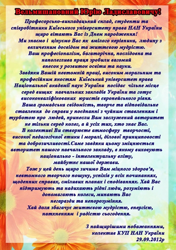 Вітаємо ректора,професора,Заслуженого юриста України Бошицького Юрія Ладиславовича з Днем народження!