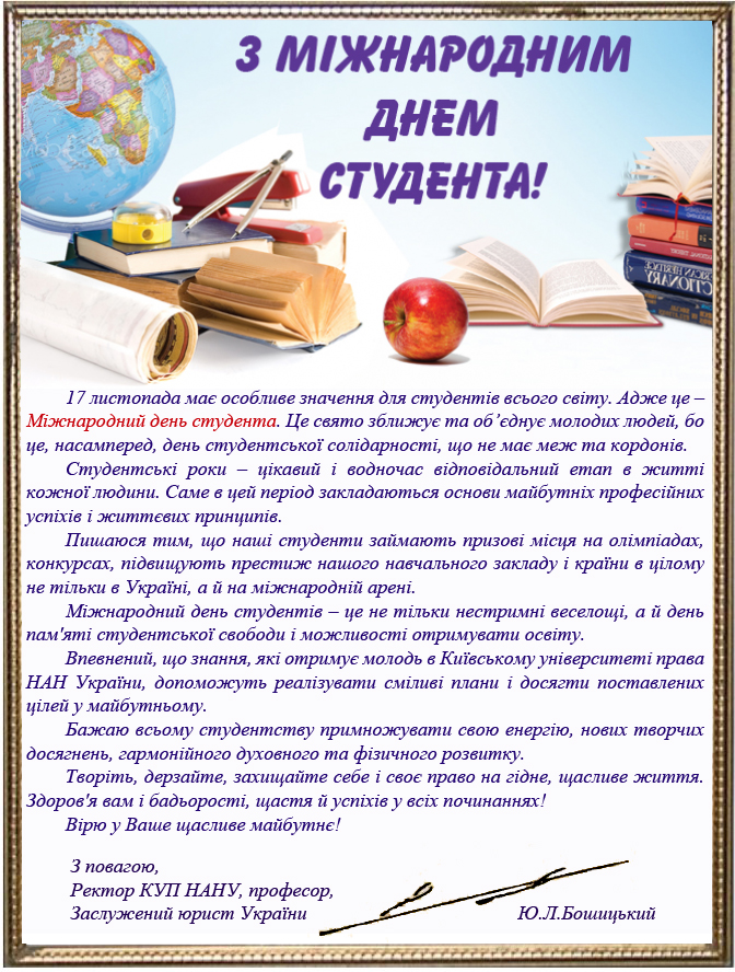 Вітання ректора КУП НАНУ з Міжнародним Днем студента