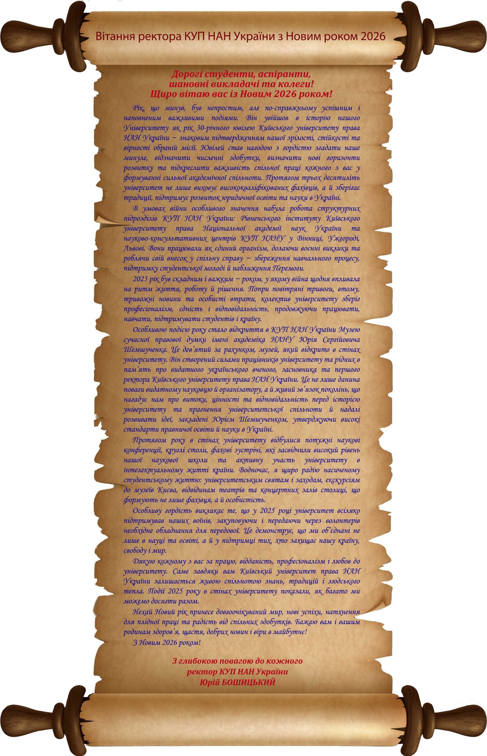 Вітання ректора КУП НАНУ з Новим роком 2026