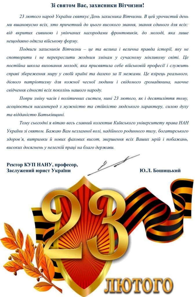 Вітання ректора з нагоди Дня захисника Вітчизни!