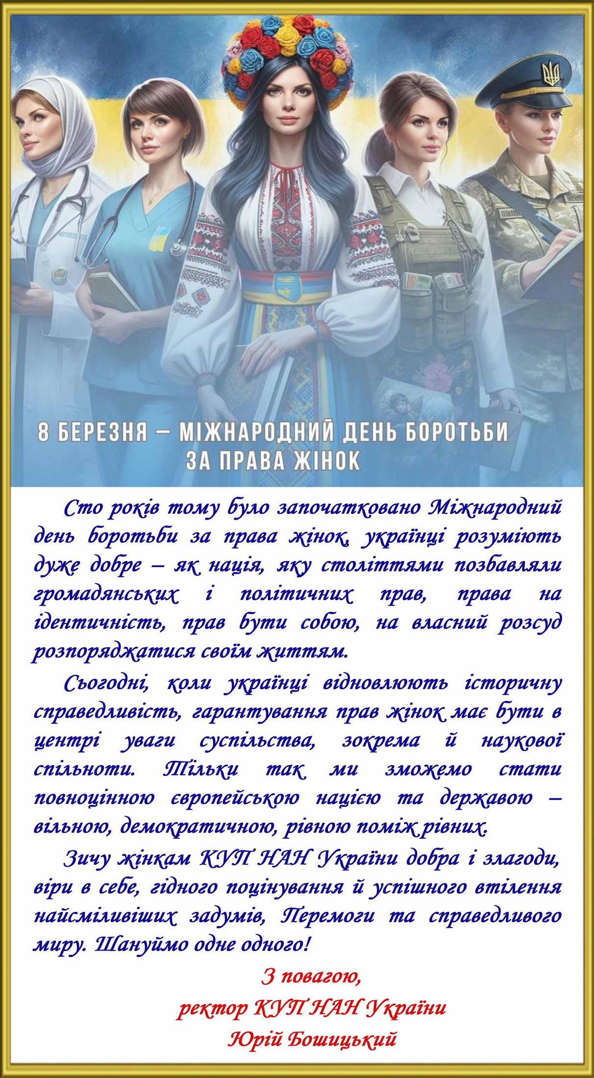 Вітання ректора з нагоди Міжнародного дня боротьби за права жінок