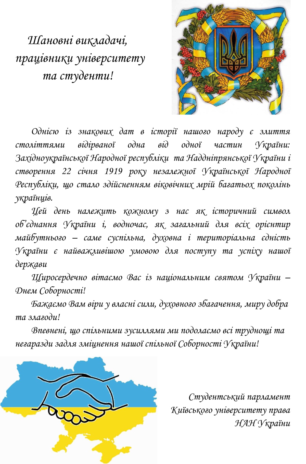 Вітання студентського парламенту з Днем Соборності та Свободи!
