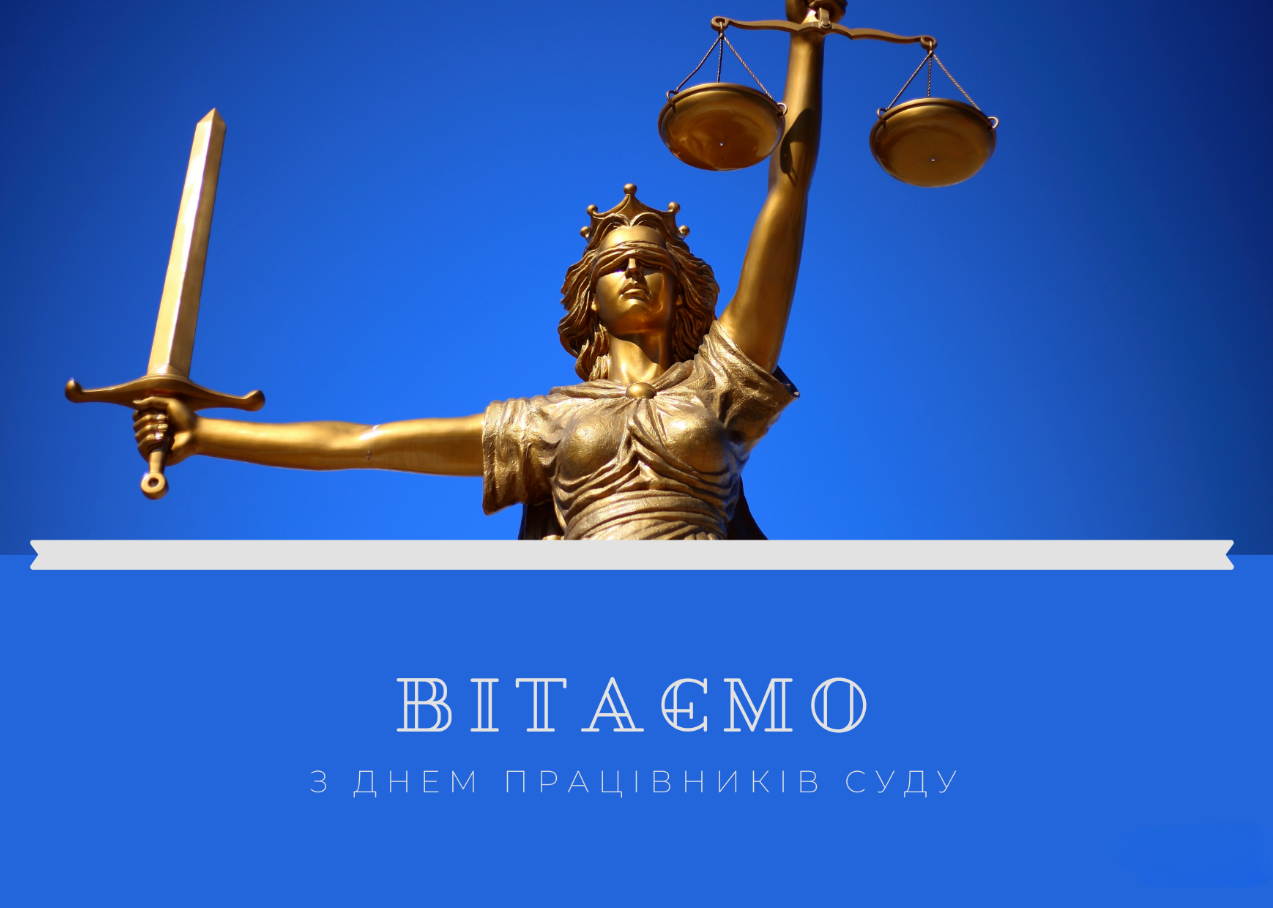 У день професійного свята вітаємо всіх працівників системи судів України з Днем працівників суду України! Нехай завдяки Вам наше суспільство стає все більш правовим та гуманним! Бажаємо вам процвітання, мудрості, неупередженості у прийнятті рішень та бездоганної репутації, міцного здоров’я та бравих сил. Нехай правосуддя завжди тріумфує в нашій державі, нехай право, закон, чесність та справедливість повсякчас панують в Україні.
