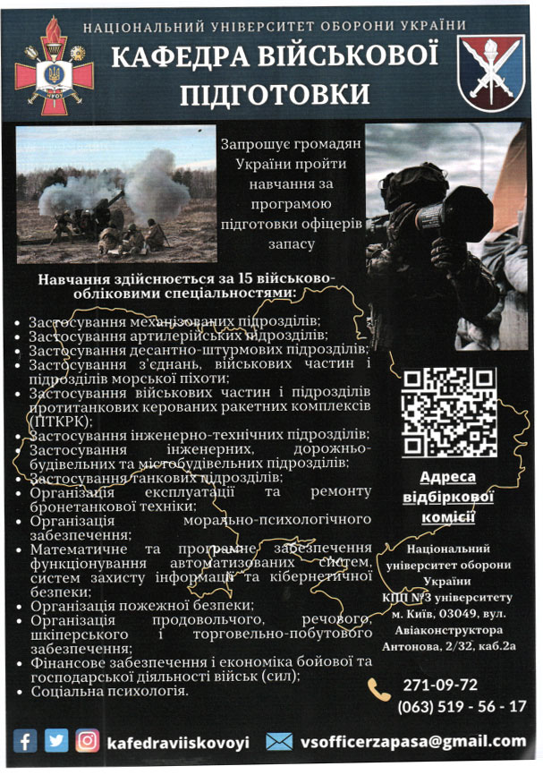 оголосила конкурсний відбір громадян для проходження військової підготовки за програмою підготовки офіцерів запасу у 2025 році
