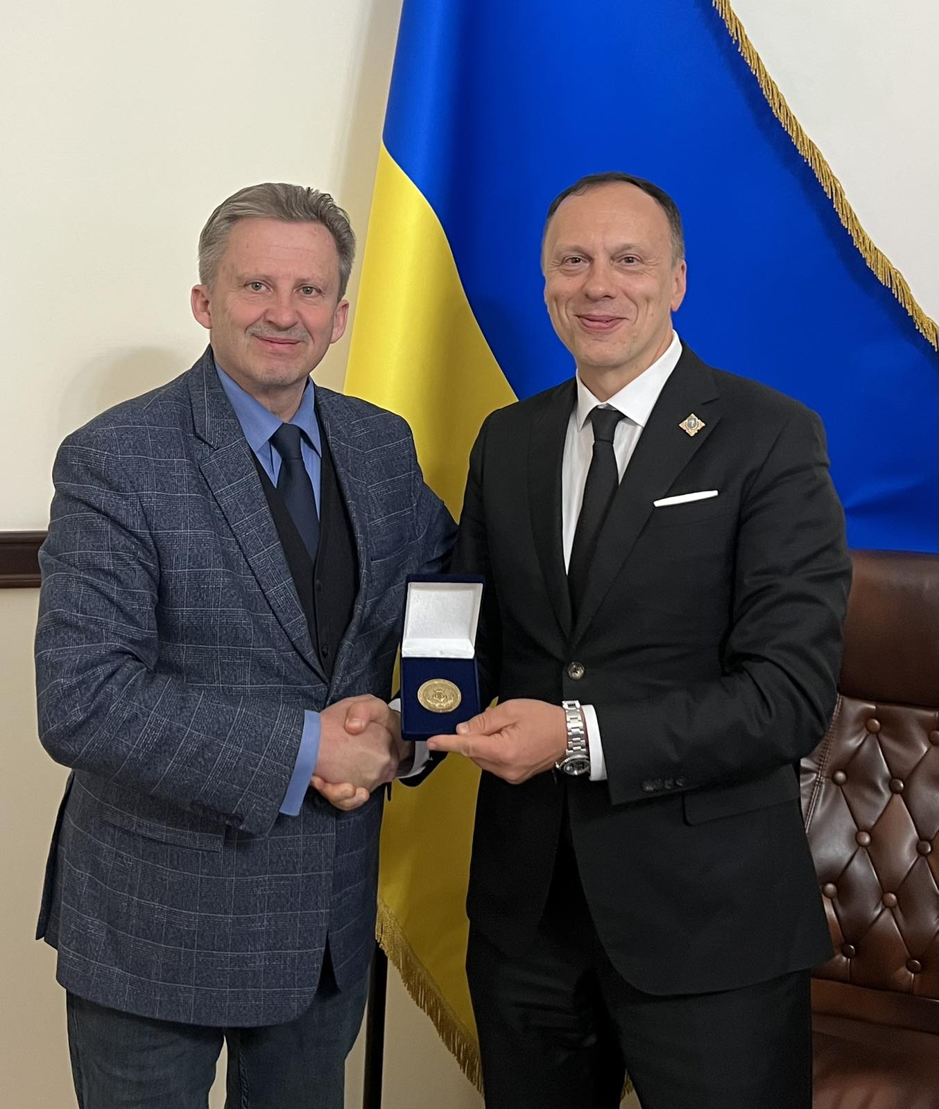 На завершення зустрічі, пан Максим Тимошенко вручив ректору Київського університету права Юрію Бошицькому «Почесну медаль Національної музичної академії України ім. П.І. Чайковського».