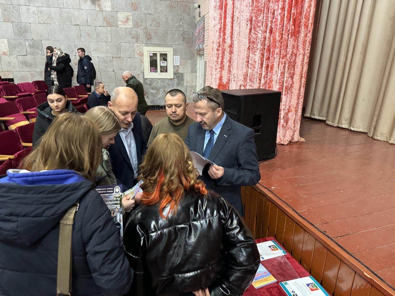 З метою налагодження нових партнерських відносин з навчальними закладами, ректор в супроводжені вищевказаних керівників, відвідав державний професійно-технічний навчальний заклад «Козятинське міжрегіональне вище професійне училище залізничного транспорту”, де відбулася зустріч з директором Андрієм Стецюком, викладачами та багаточисельною аудиторією студентів. У своїй промові перед присутніми, у великій залі коледжу, Юрій Бошицький розповів про історію розвитку та становлення університету права, матеріально-технічну базу, кадровий потенціал та перспективи розвитку, а також наголосив на тому, що випускники навчального закладу можуть продовжувати здобувати вищу юридичну освіту у КУП НАНУ і в майбутньому працювати, в тому числі, юристами в сфері залізничного транспорту.