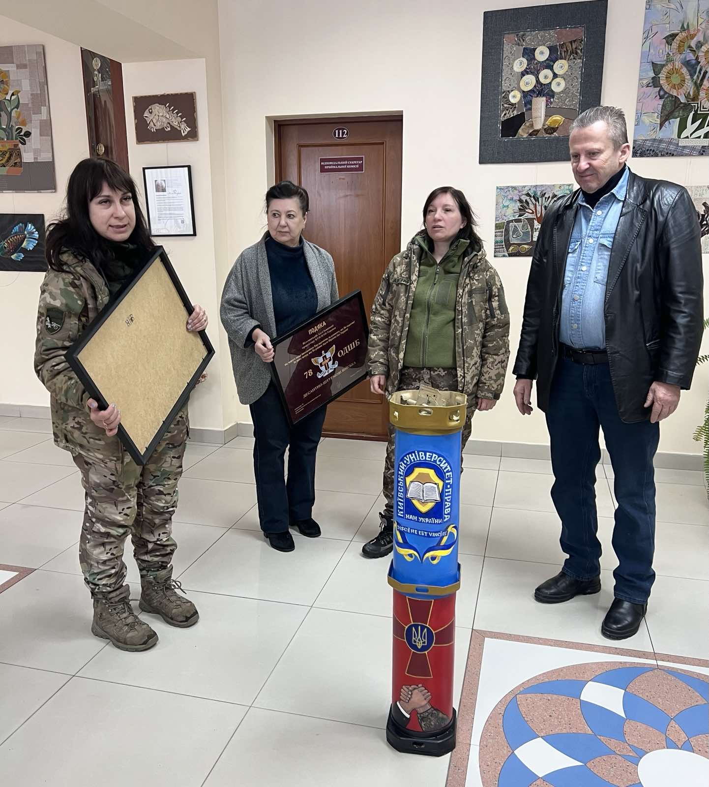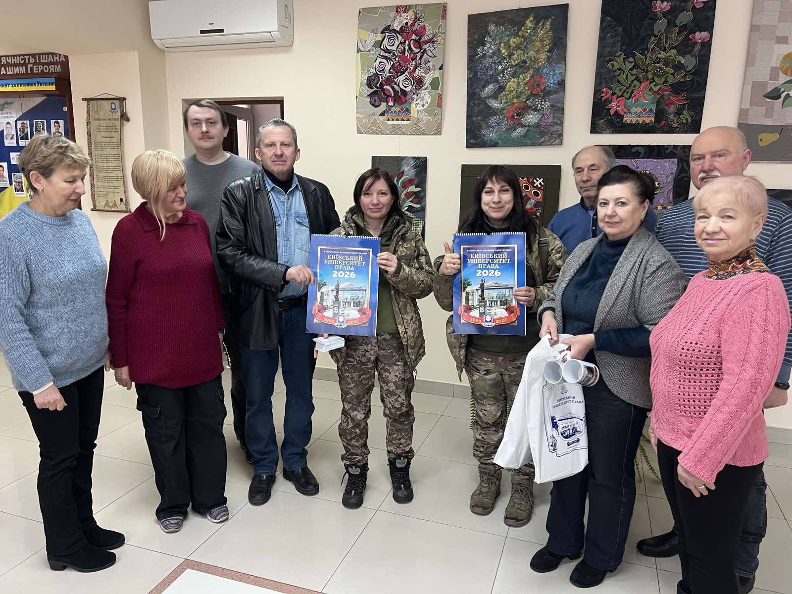 Сьогодні, 6 лютого 2026 року, до Київського університету права НАН України завітали волонтери − Наталія Мамай і Євгенія Кравчук з подяками від 78 окремої десантно-штурмової бригади для керівництва університету за допомогу і підтримку Збройним Силам України та подарунком для колективу університету.